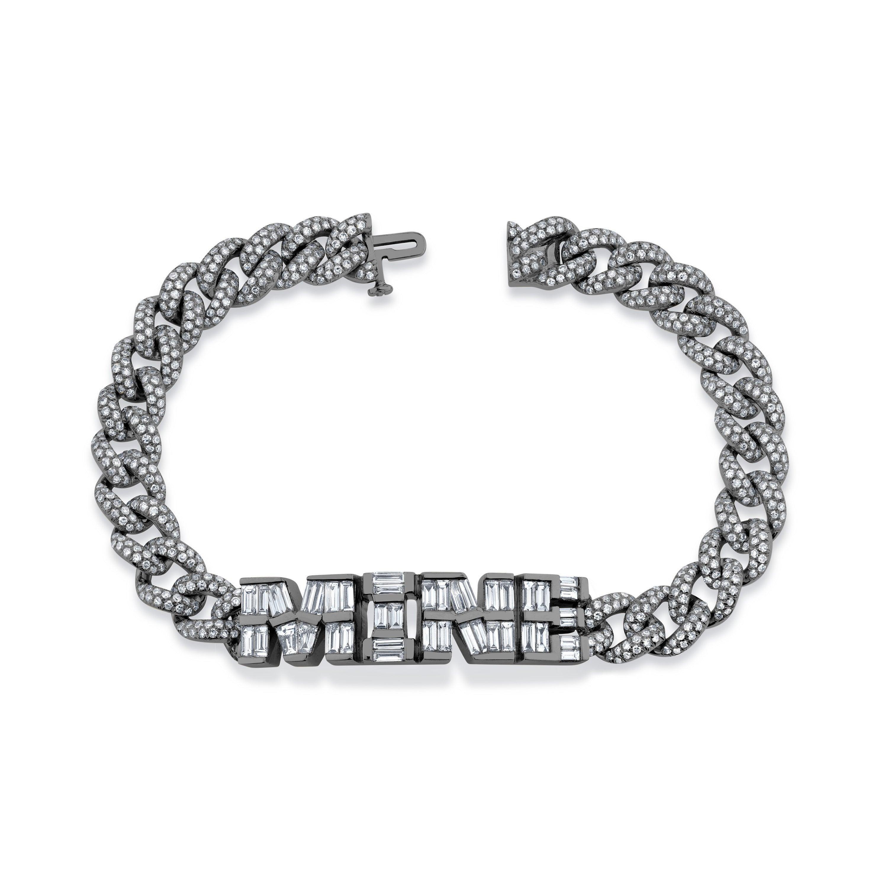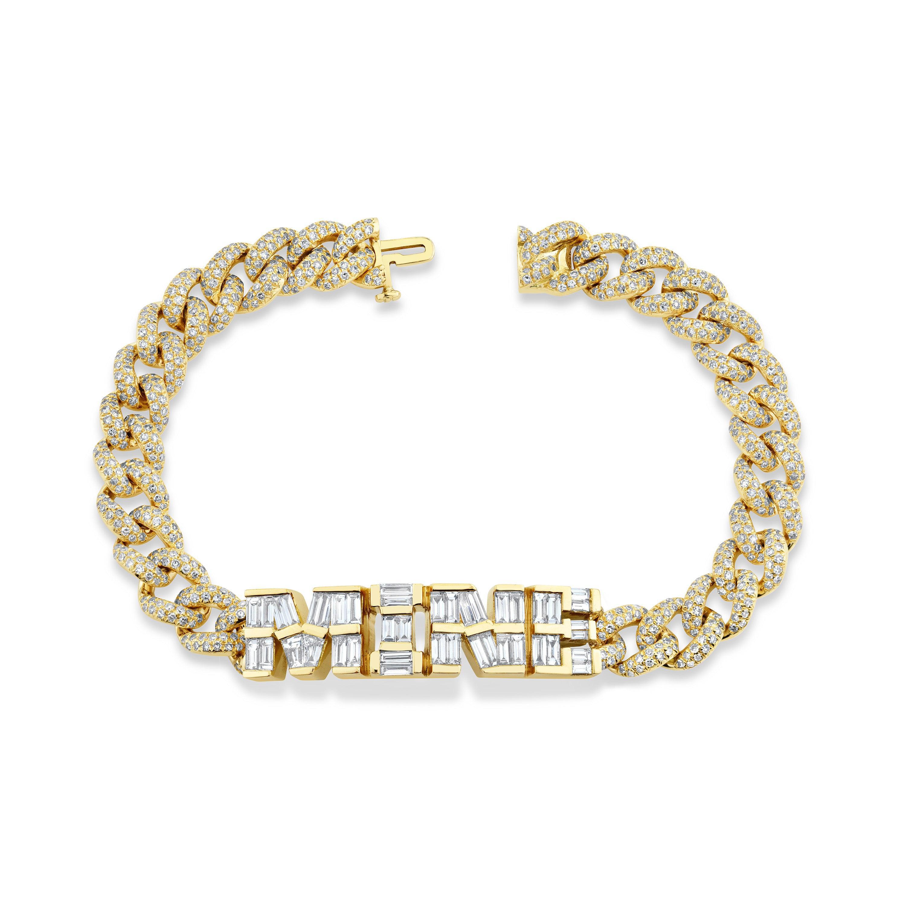 DIAMOND BAGUETTE CUSTOM 4 LETTER PAVE MEDIUM LINK BRACELET