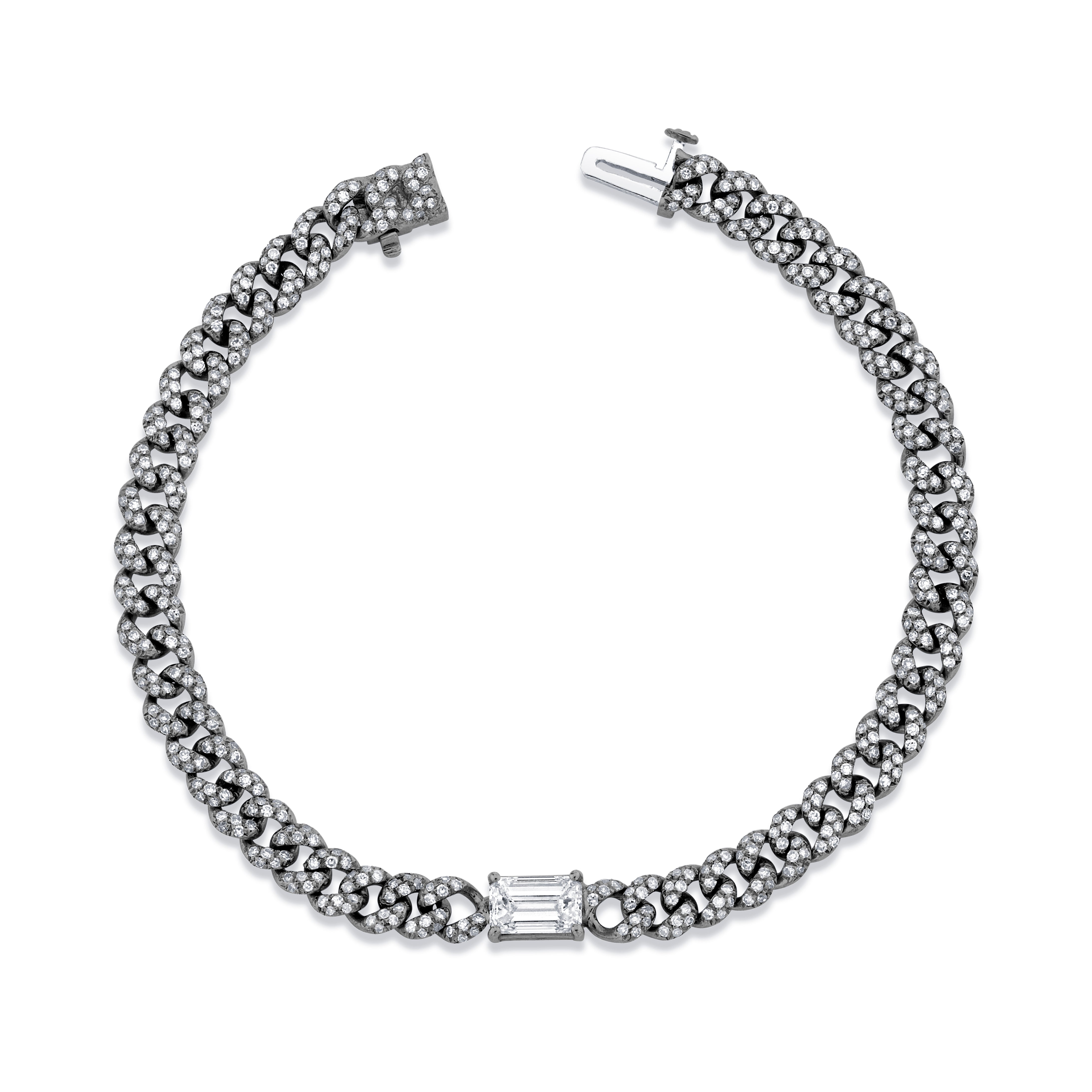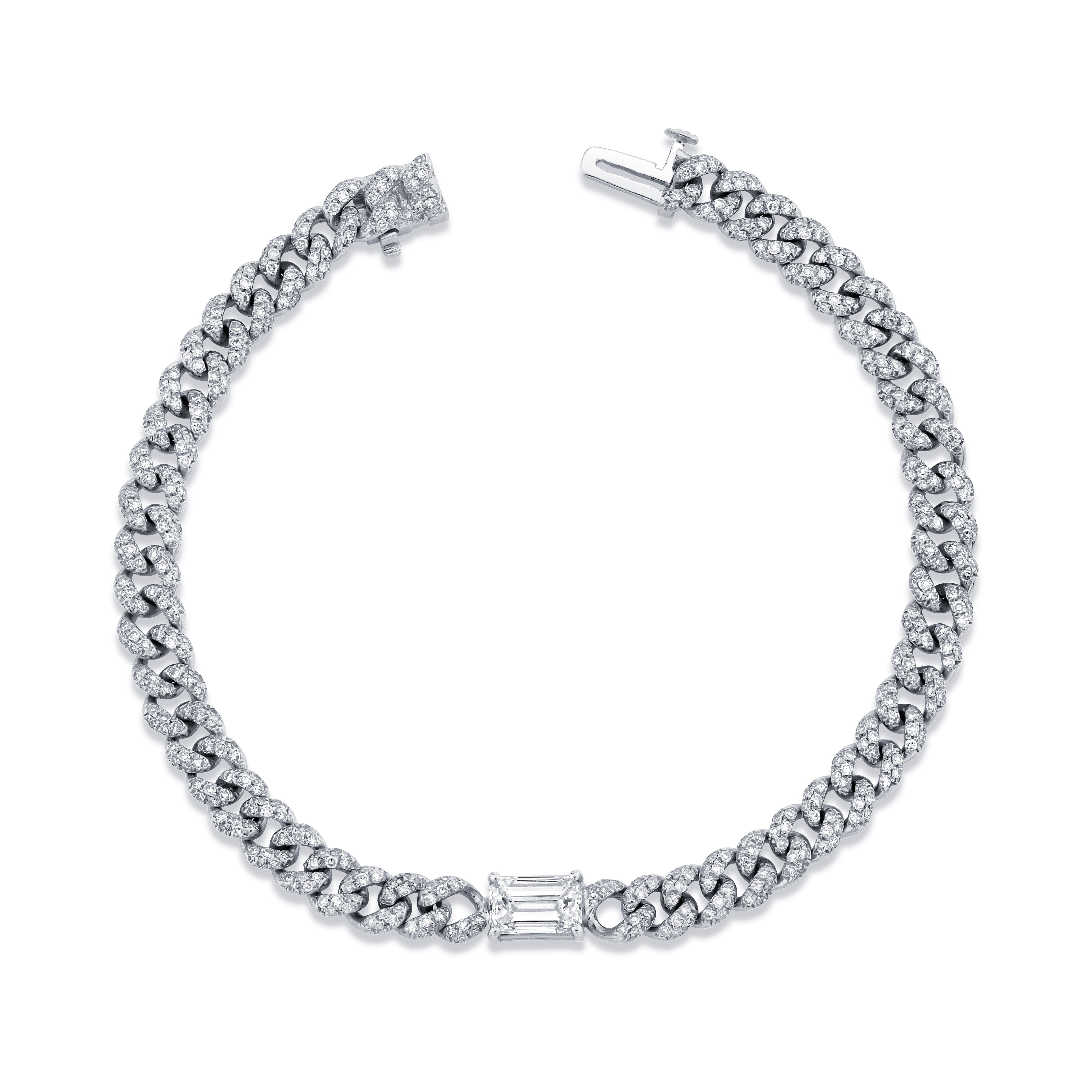 DIAMOND PAVE EMERALD CUT MINI LINK BRACELET