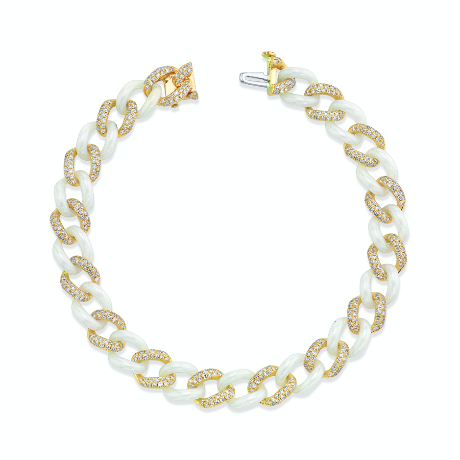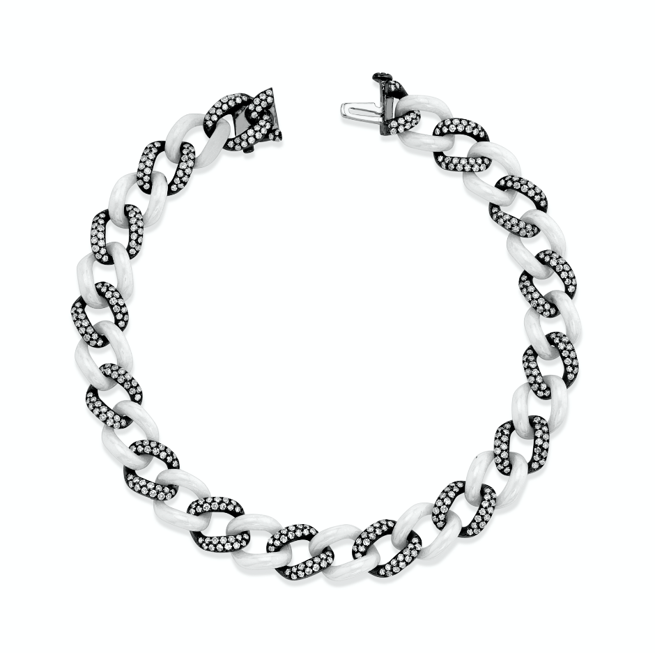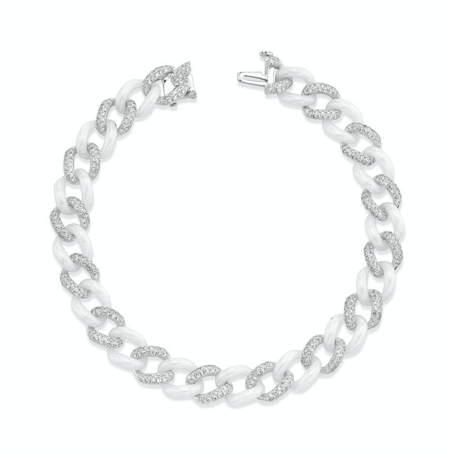 DIAMOND PAVE & WHITE CERAMIC MEDIUM LINK BRACELET
