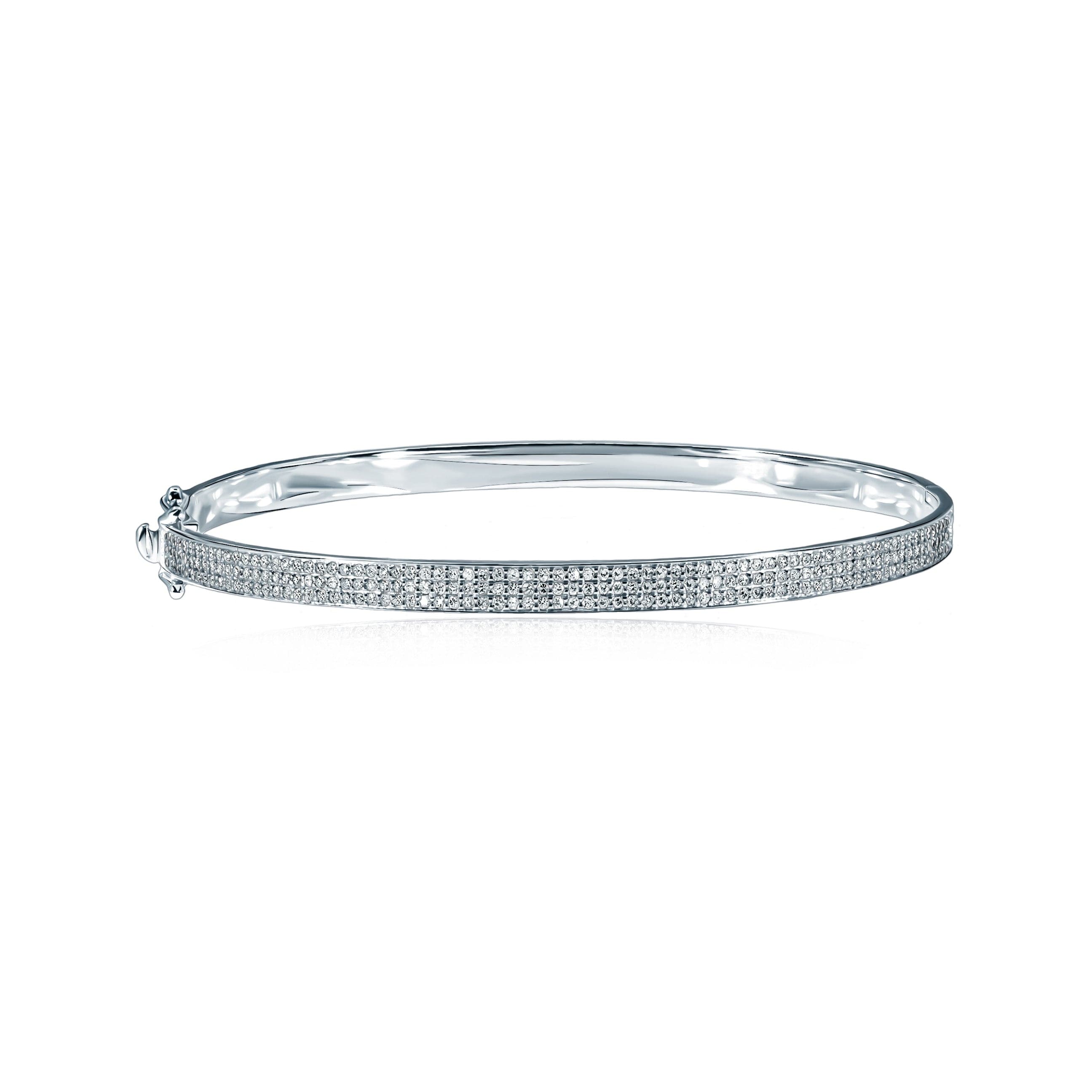 A rigid classic bracelet with diamonds complements the Farandole jewelry series. This product is encrusted with three rows of diamonds and has an ergonomic shape, which does not allow the accessory to twist during wear.