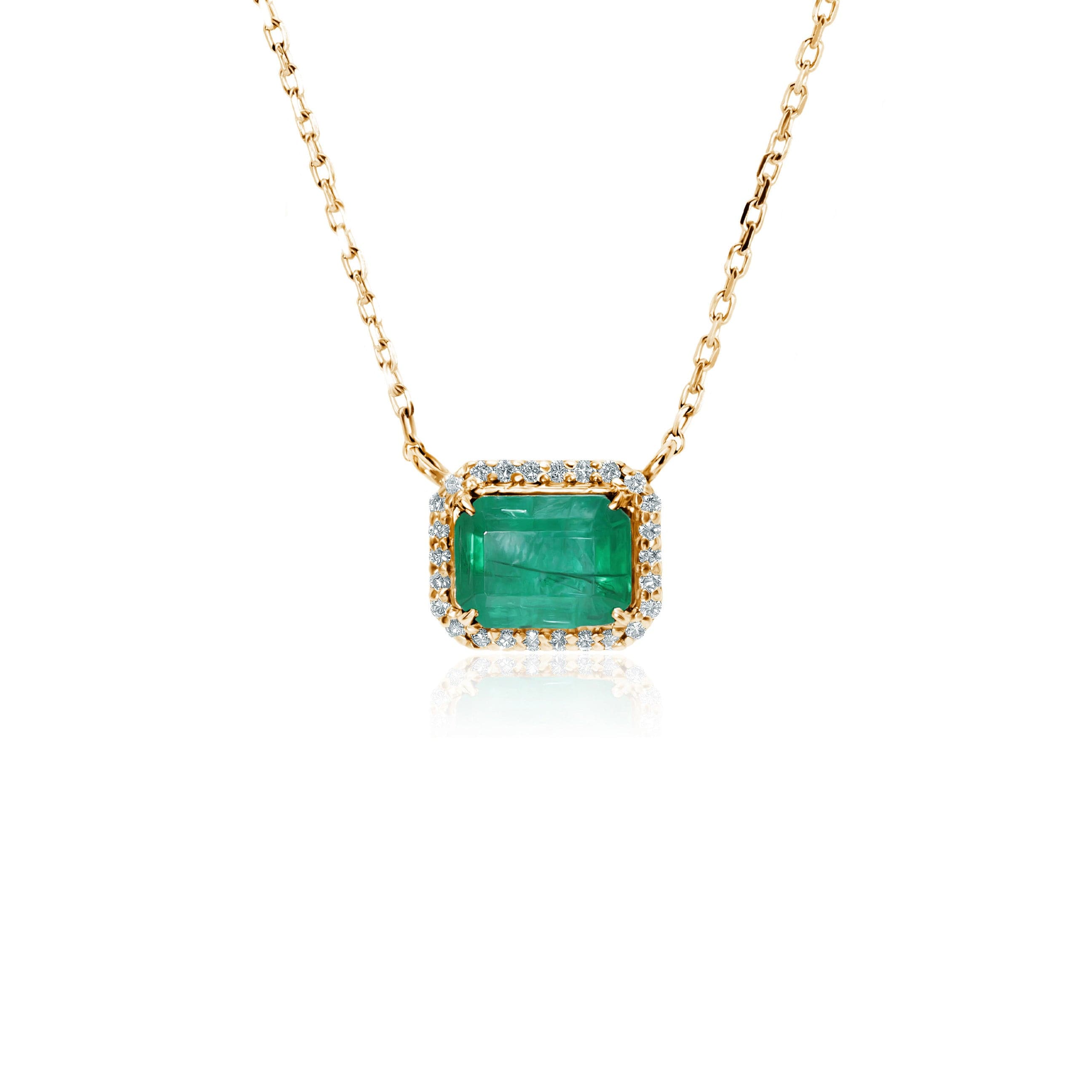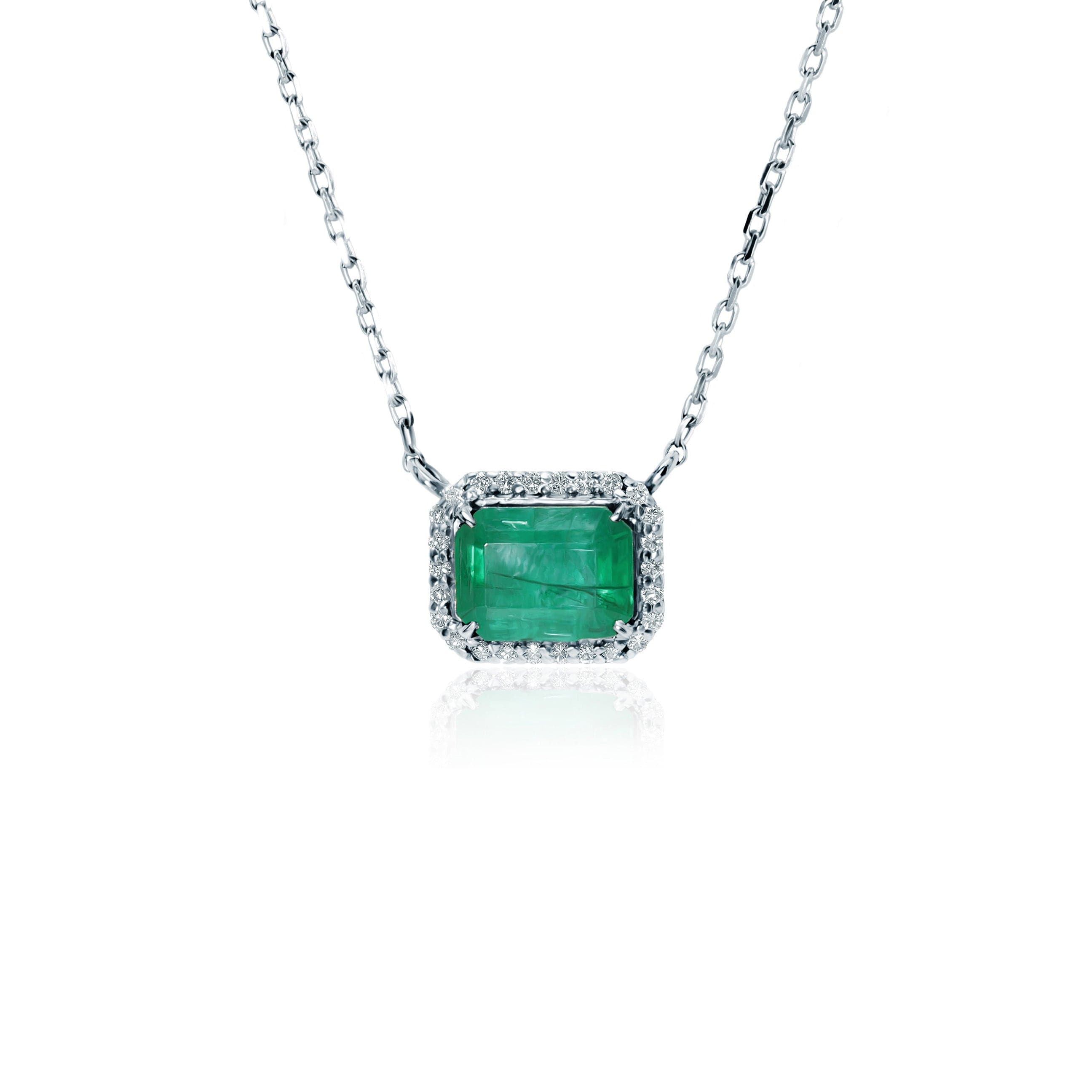 White Gold Necklaces with Emerald and white Diamonds. This item in stock ready to ship in 1- 3 days.
