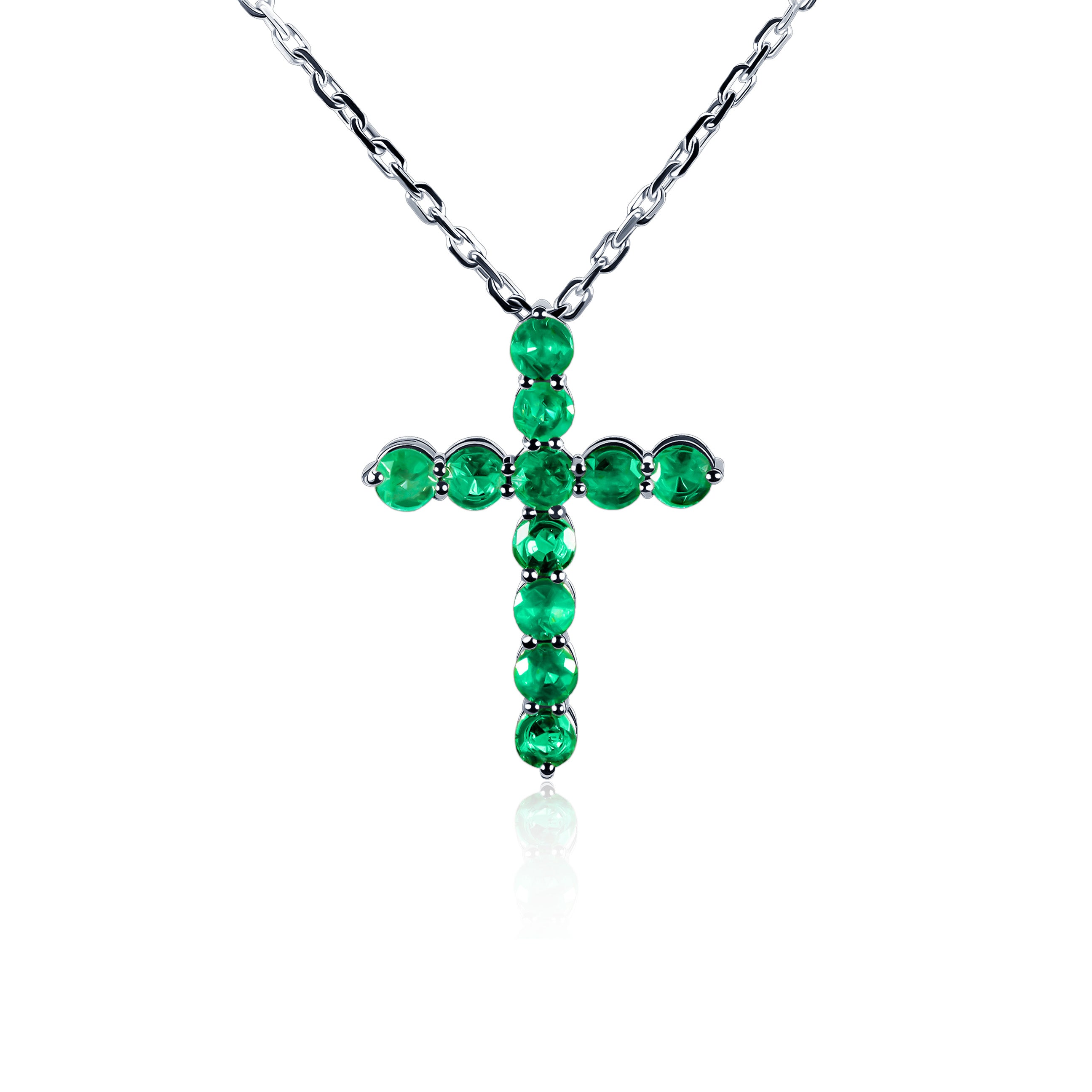 White Gold Cross Pendant with Emeralds. This item in stock ready to ship in 1- 3 days.