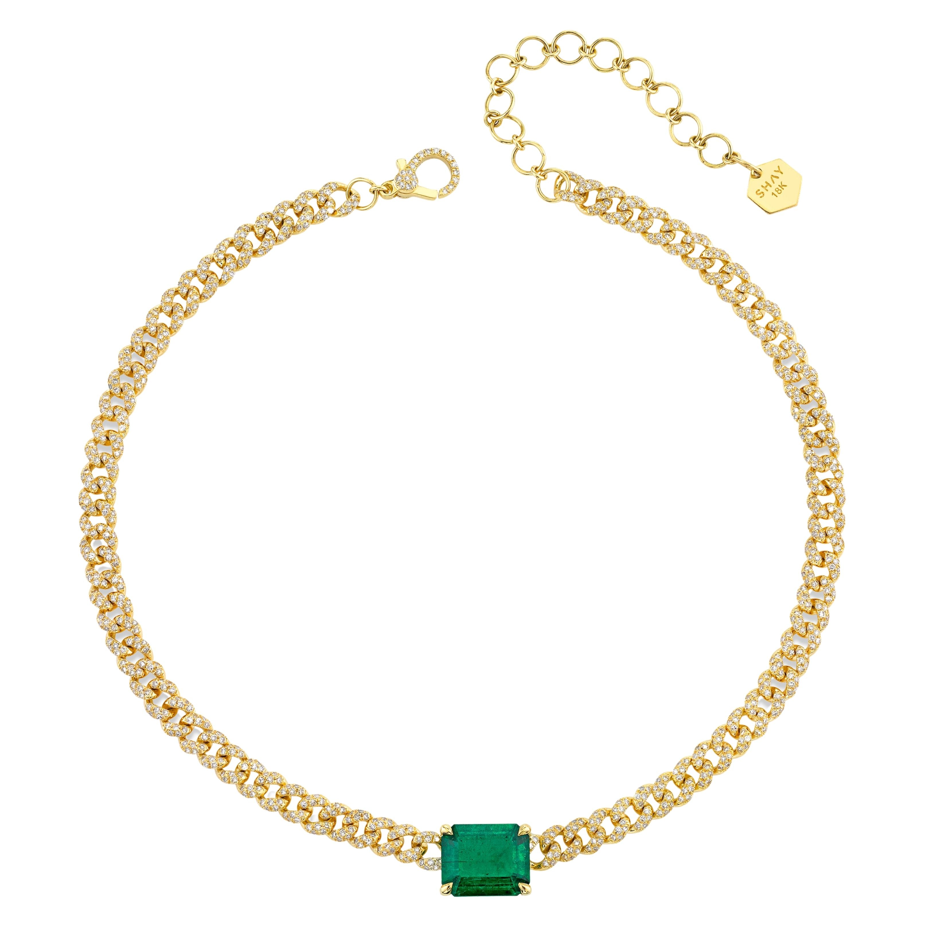 The SHAY Emerald Solitaire Pave Mini Link Necklace.