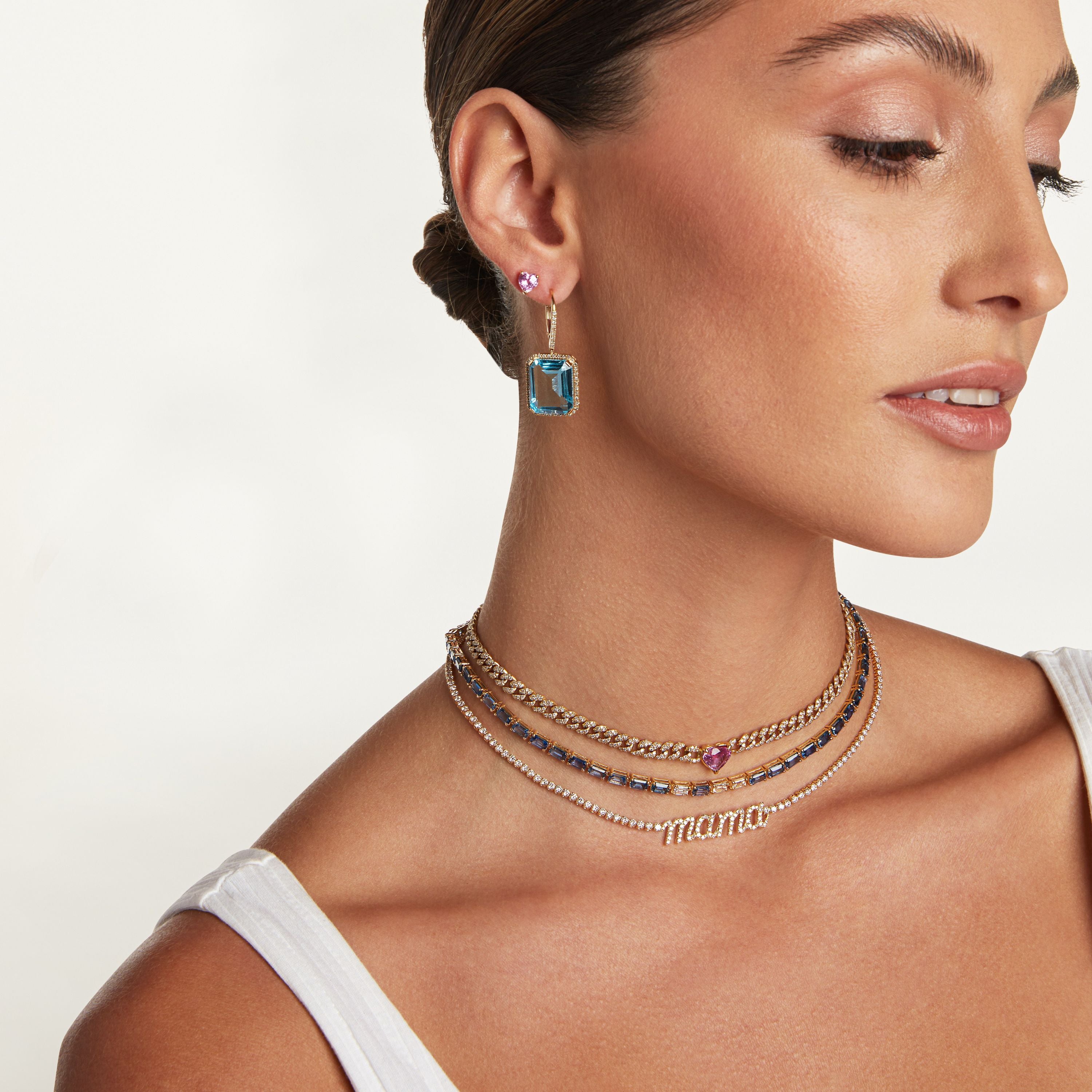 The SHAY Pink Sapphire Heart Pave Mini Link Necklace.