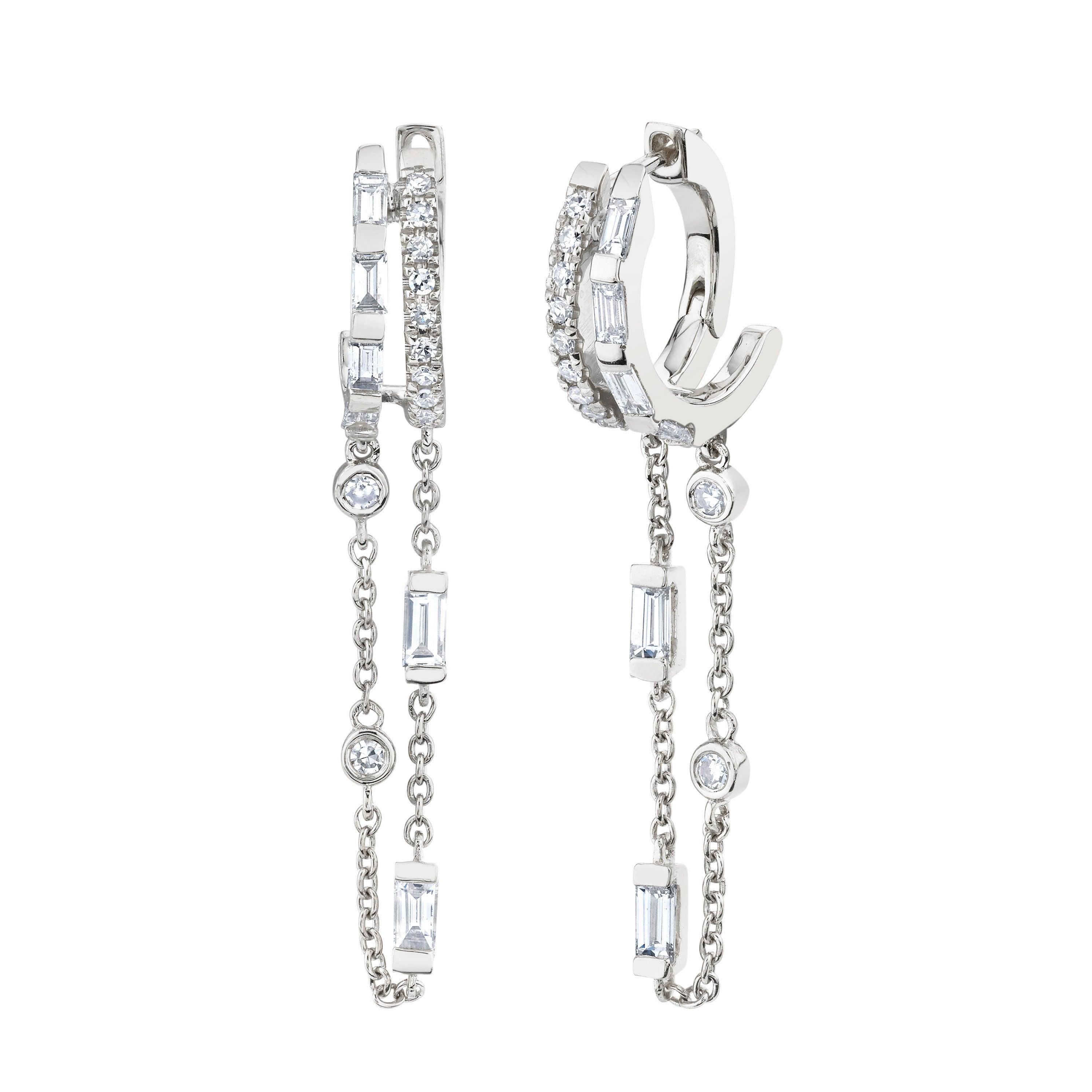 The SHAY Diamond Double Mixed Fringe Huggies.