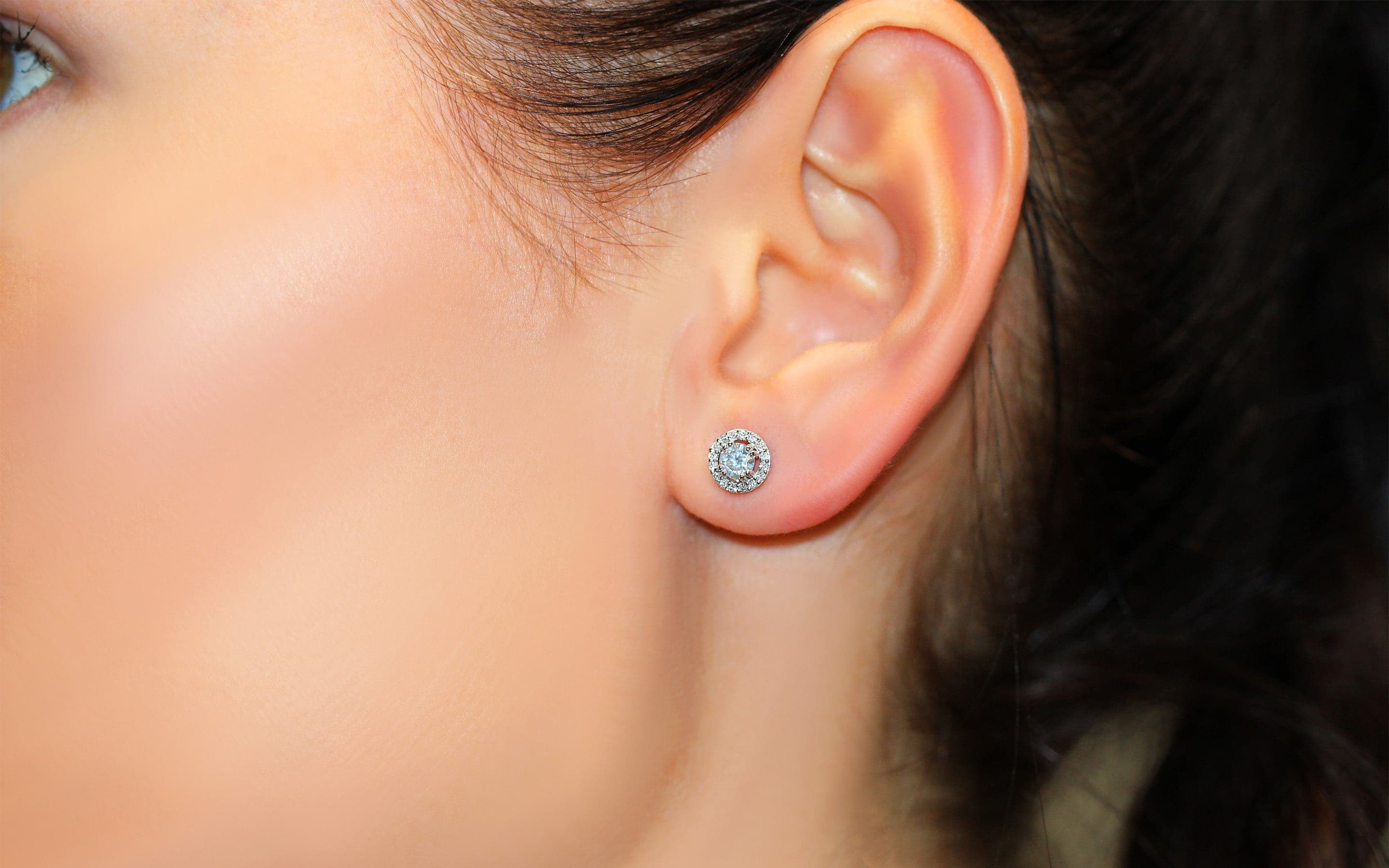 A variation of the classic Jive diamond stud earrings, brighter due to the scattering of small diamonds around the central large one.