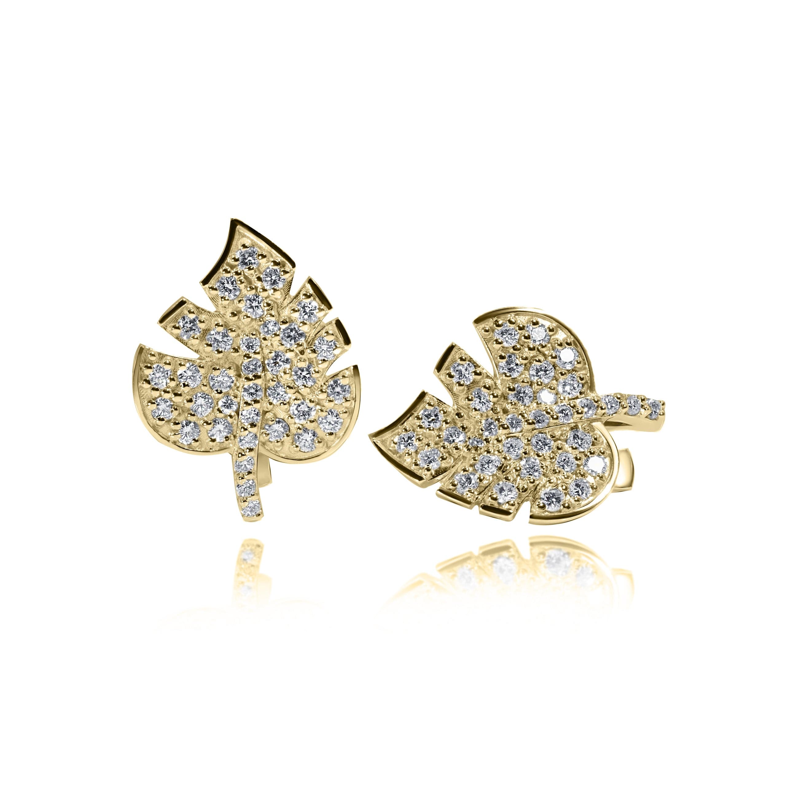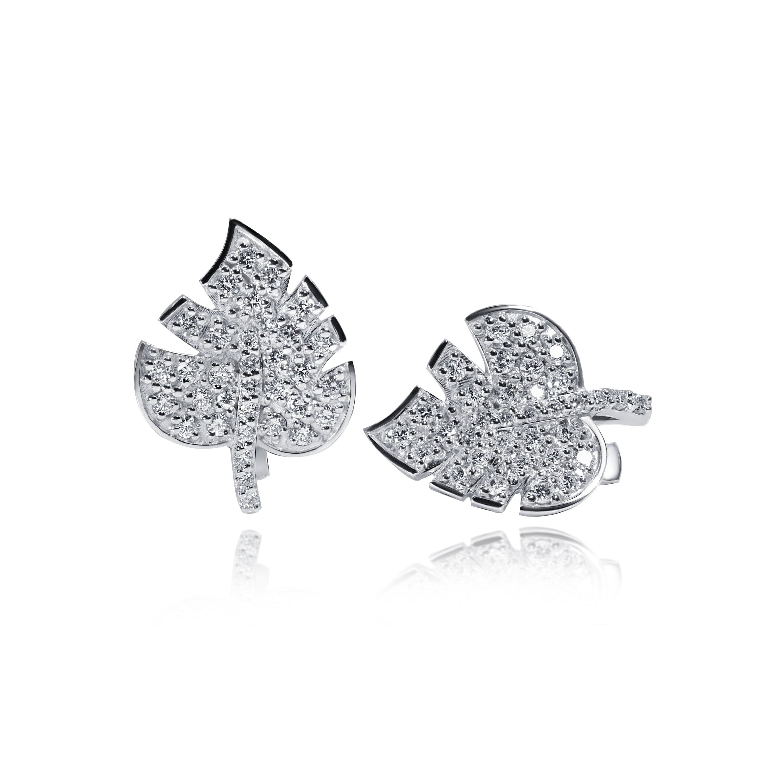 Leaf-shaped Kizomba earrings with an English clasp. The decoration is encrusted with diamonds. A fantasy design will add a special touch to any look.