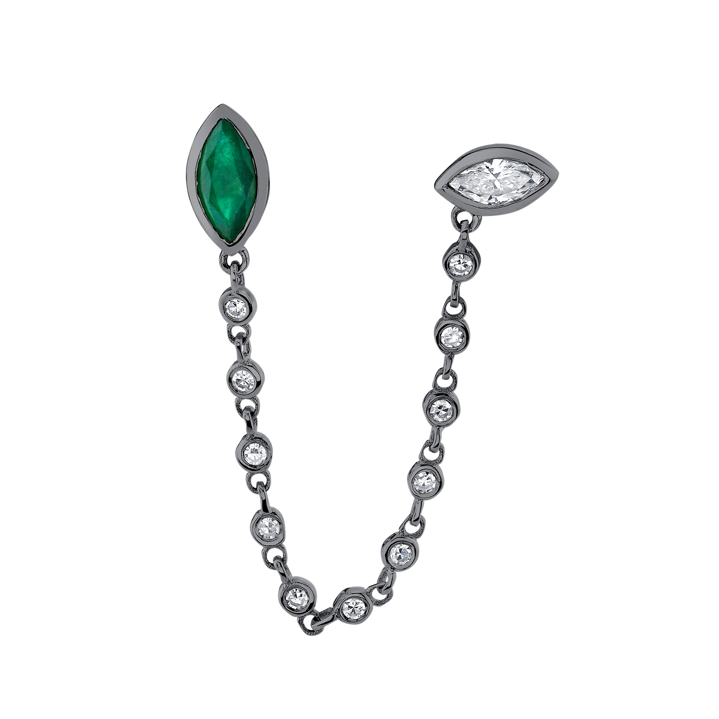 EMERALD & DIAMOND DUO CHAIN LINK STUD