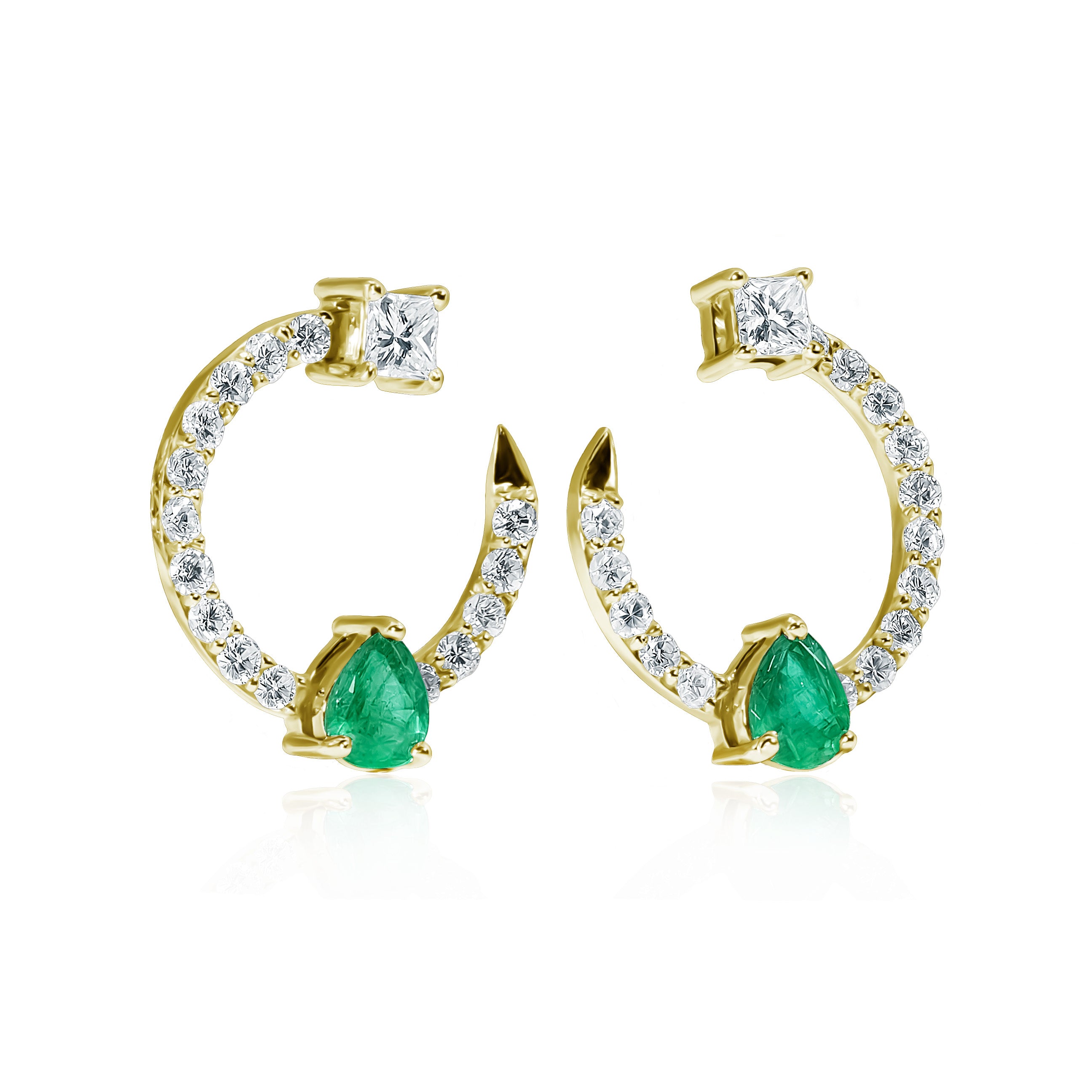 Crescent earrings with diamonds and emeralds are for those who love interesting and non-standard shapes.