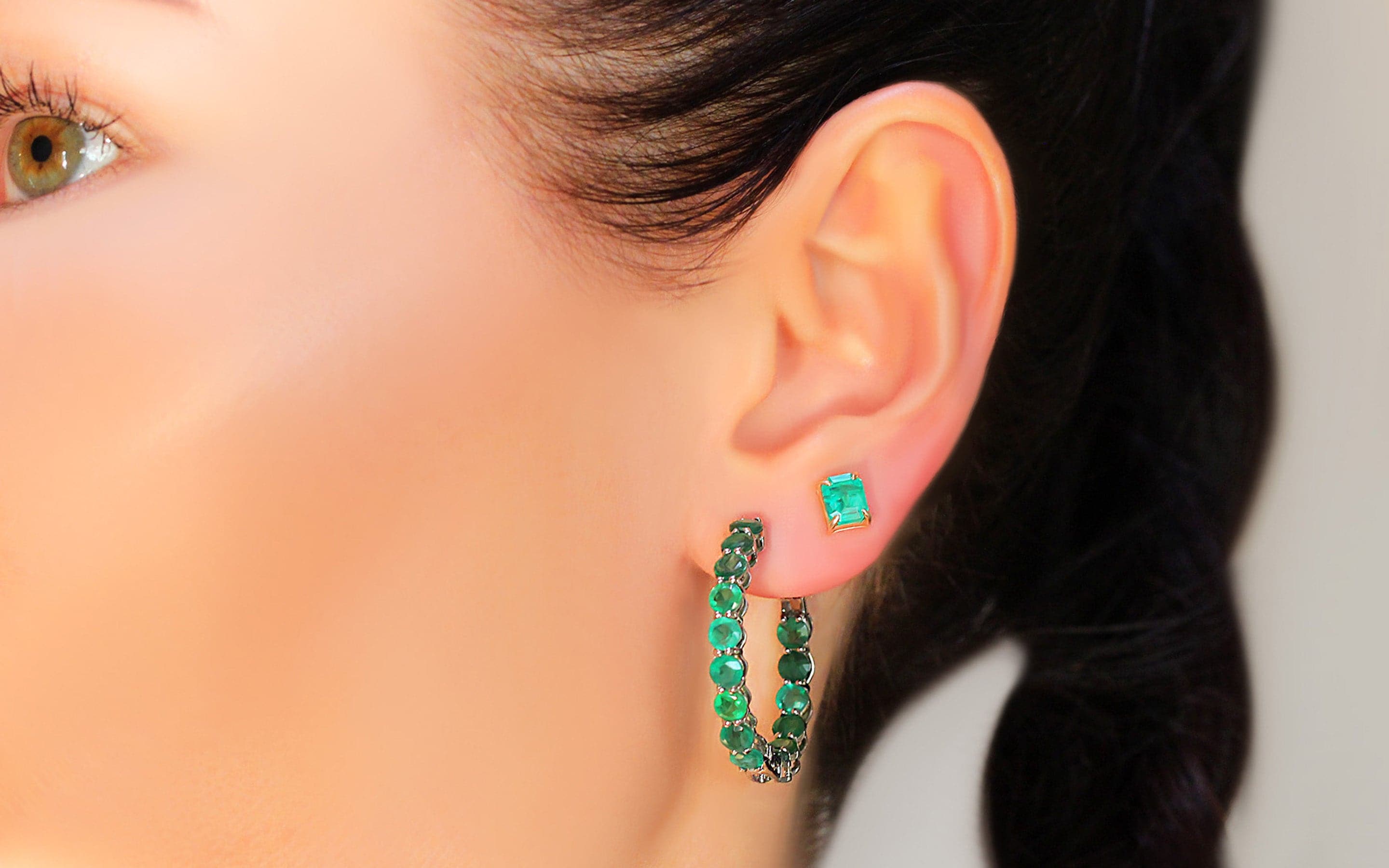 Hoop earrings with Hydra emeralds for those who love large jewelry. This accessory will not leave you without attention.