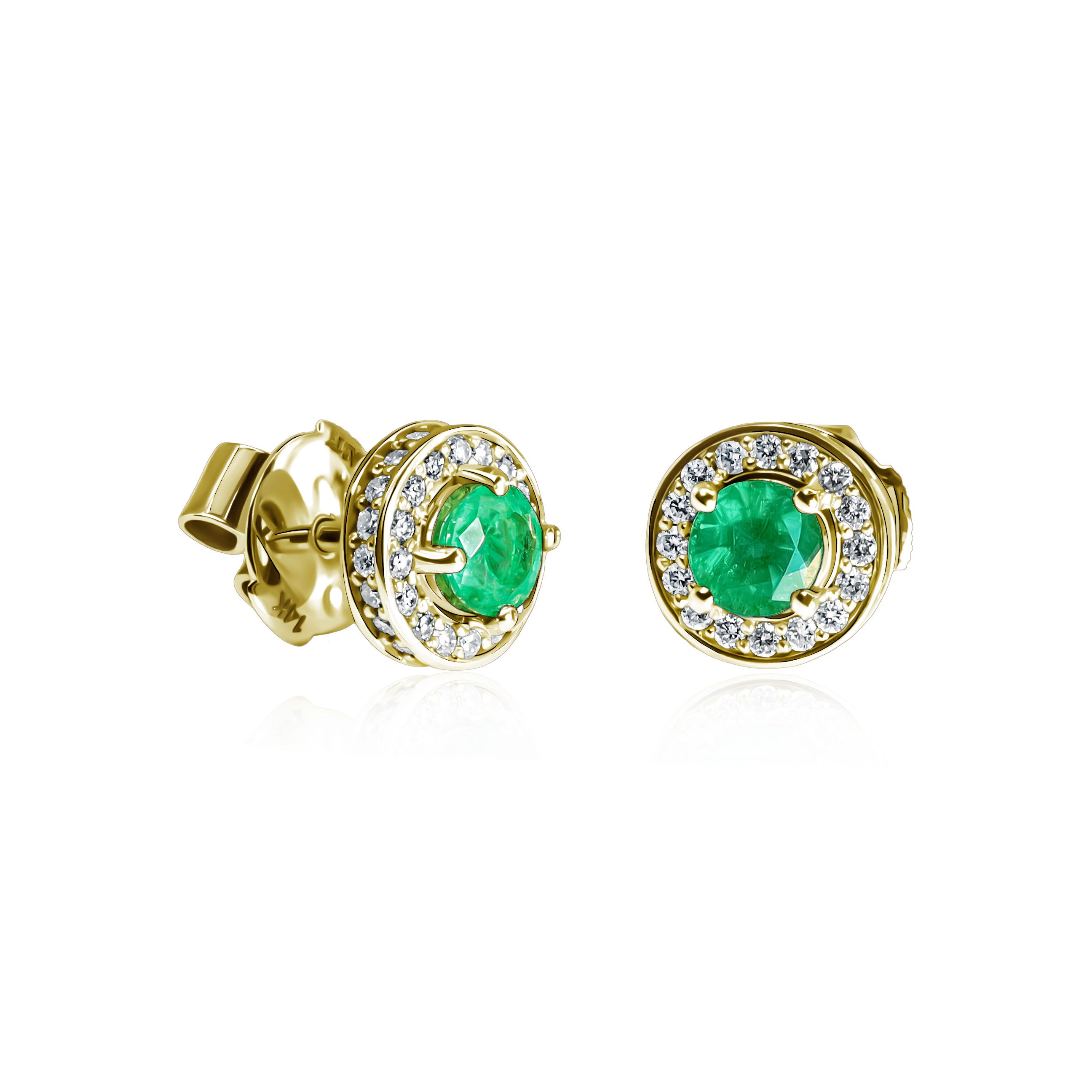 Are you looking for simple earrings for every day? You have found your ideal! Yul's emerald and diamond stud earrings are ergonomically shaped, fit to the earlobe, and are fixed with a secure screw-in clasp.