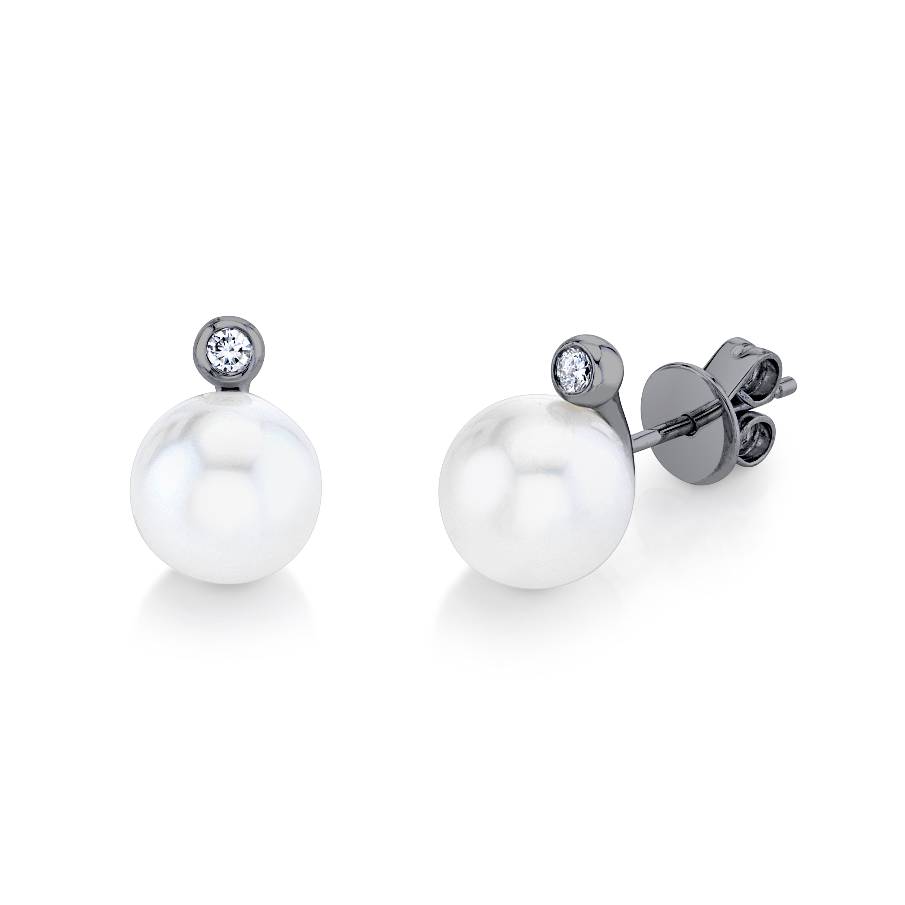 The SHAY Pearl & Diamond Orb Studs include an 8mm all natural pearl stud, with a pave white diamond that is encased in 18k gold and placed on top of the pearl for a modern twist on your everyday pearl earrings.