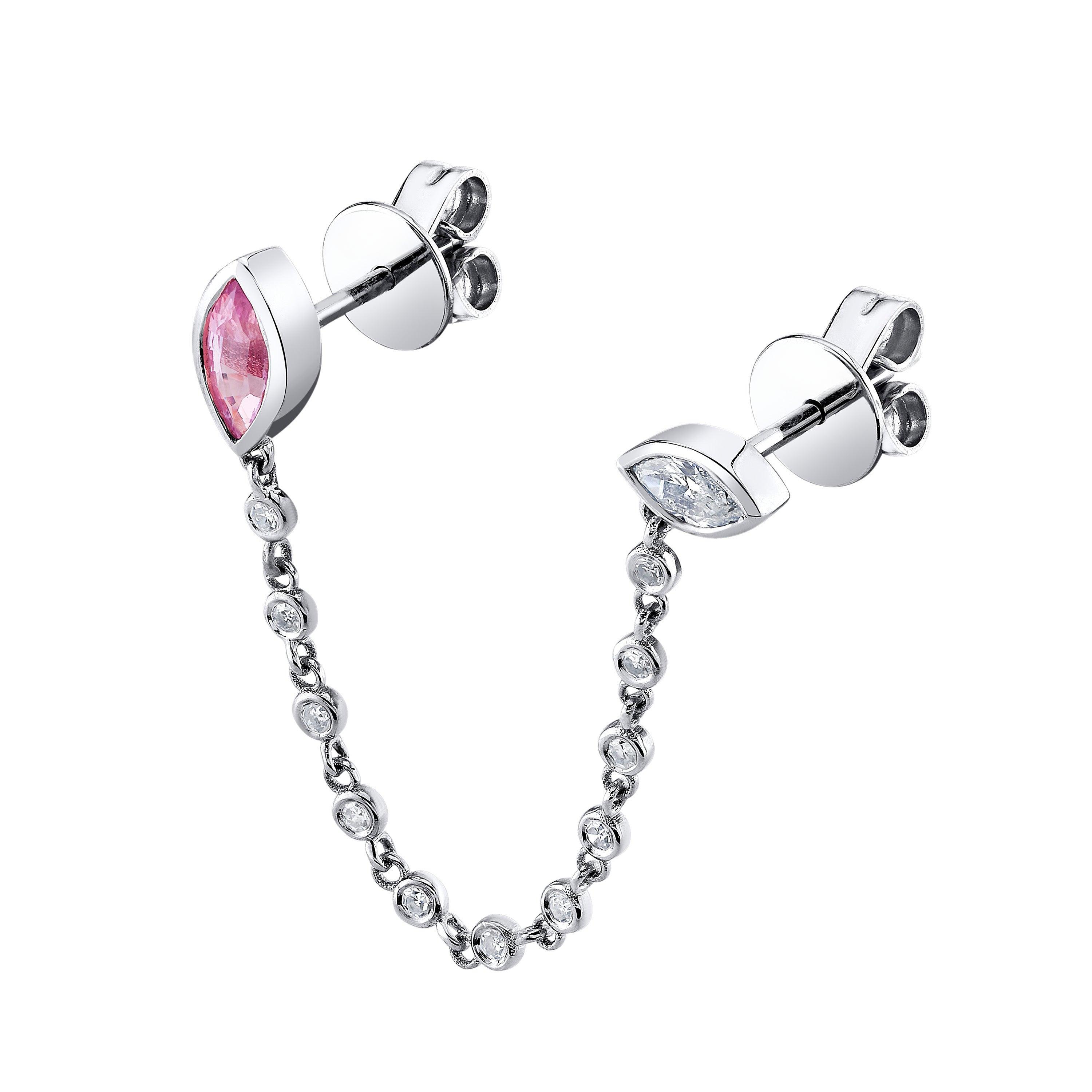 PINK SAPPHIRE & DIAMOND DUO CHAIN LINK STUD