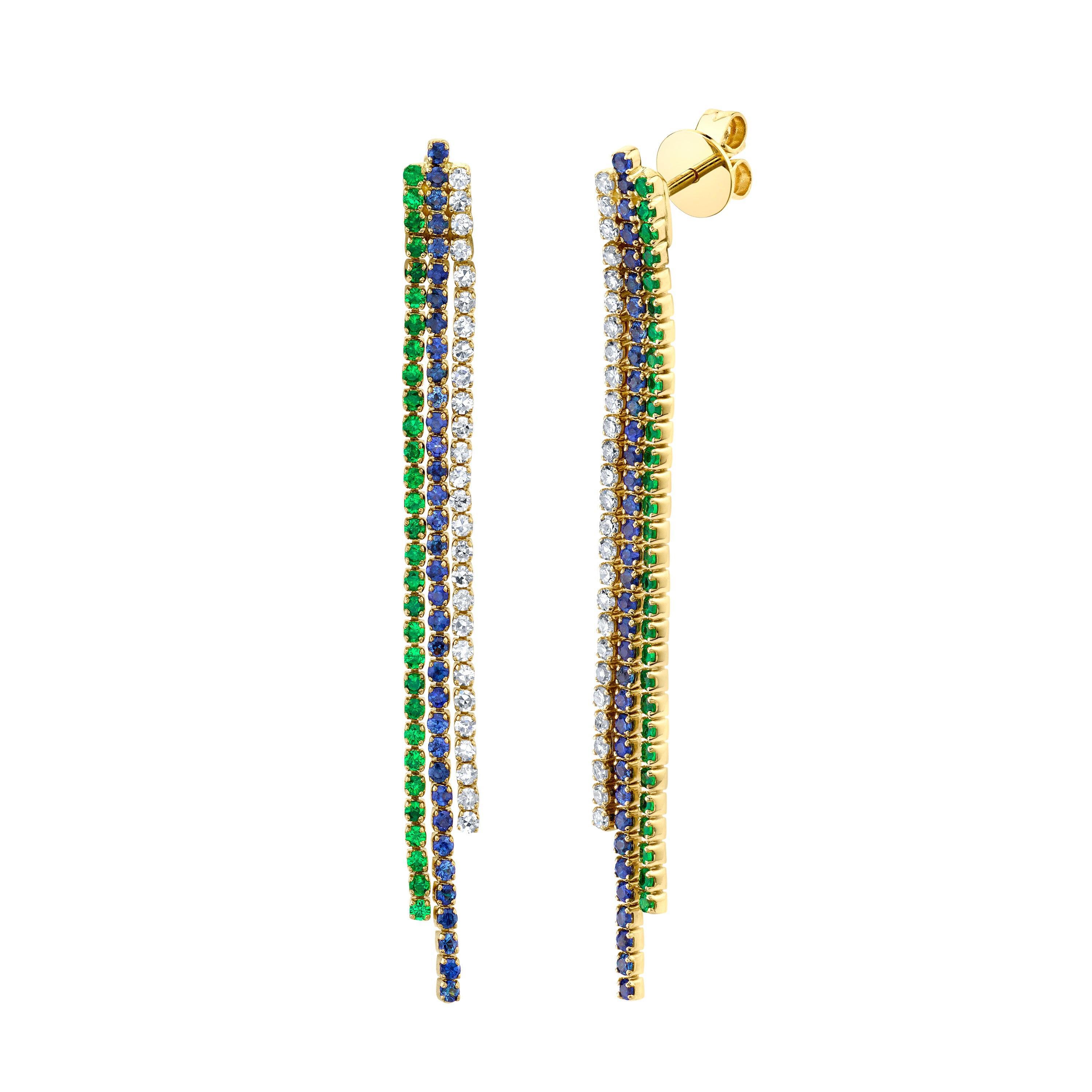 The SHAY Green Garnet & Blue Sapphire Triple Thread Drop Earrings.
