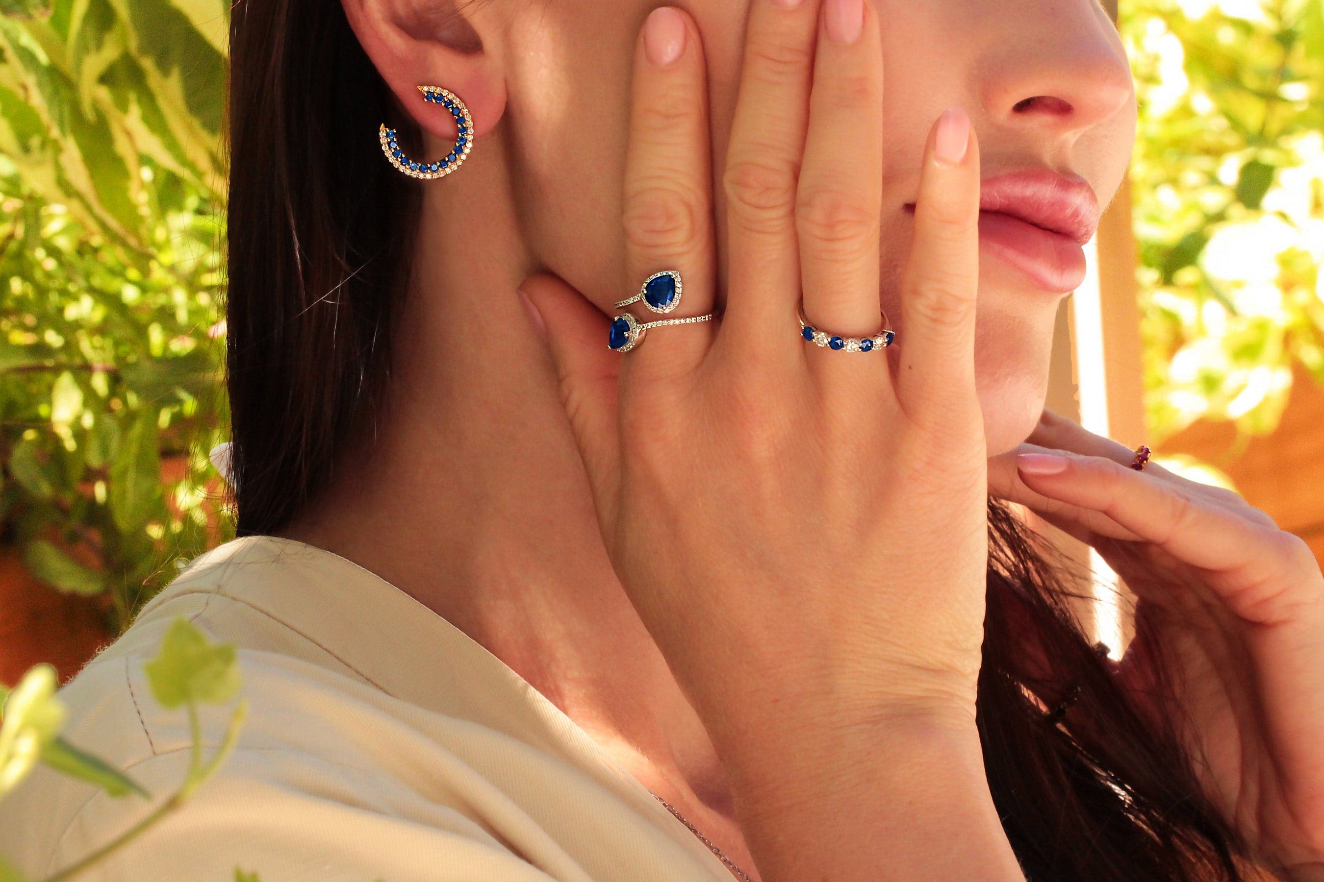 Since ancient times, the crescent has been a symbol of innocence, as well as the beginning and birth of a new life. Earrings with sapphires and diamonds Caelum is a powerful amulet that carries the moon's power and fills the owner with energy to accomplish everything conceived.