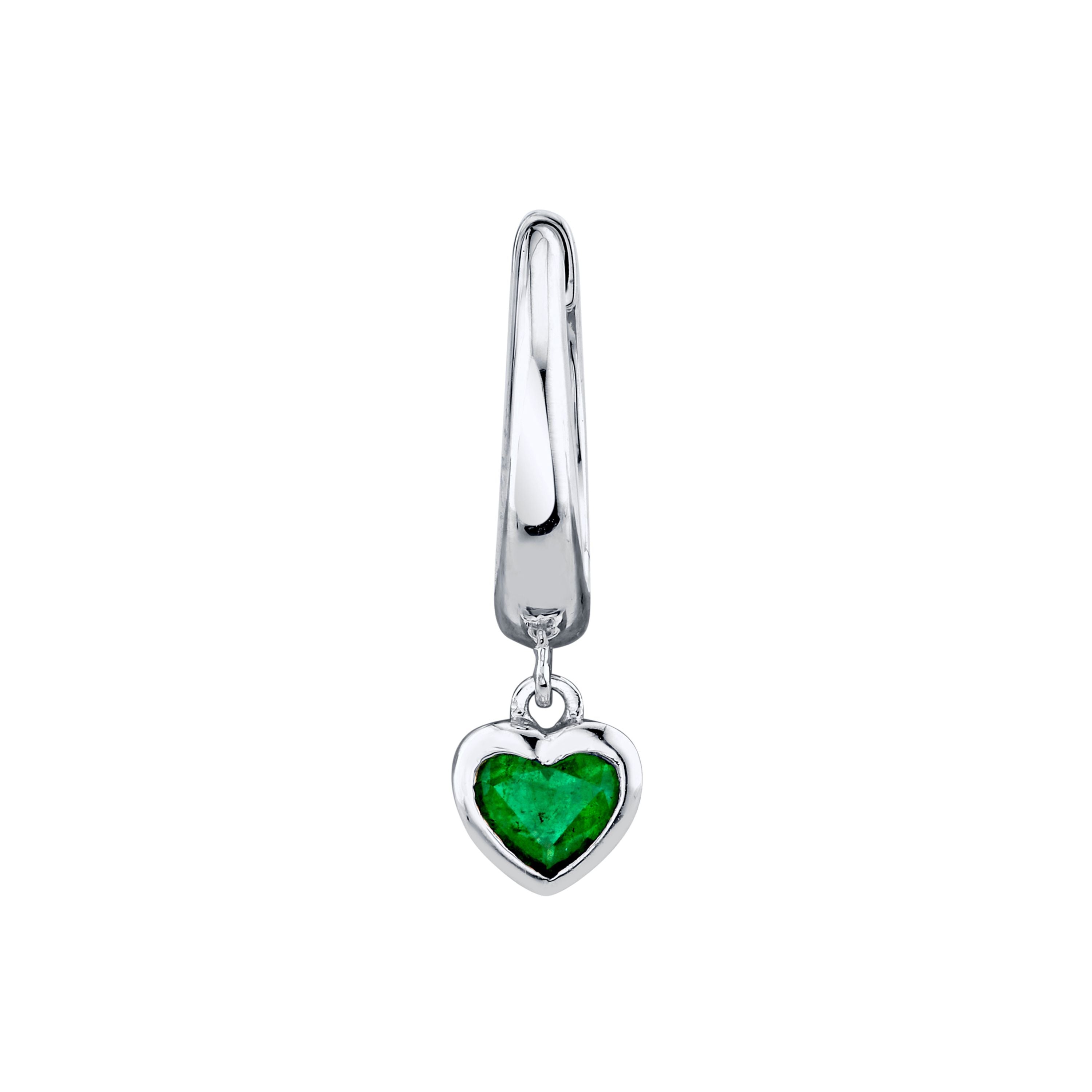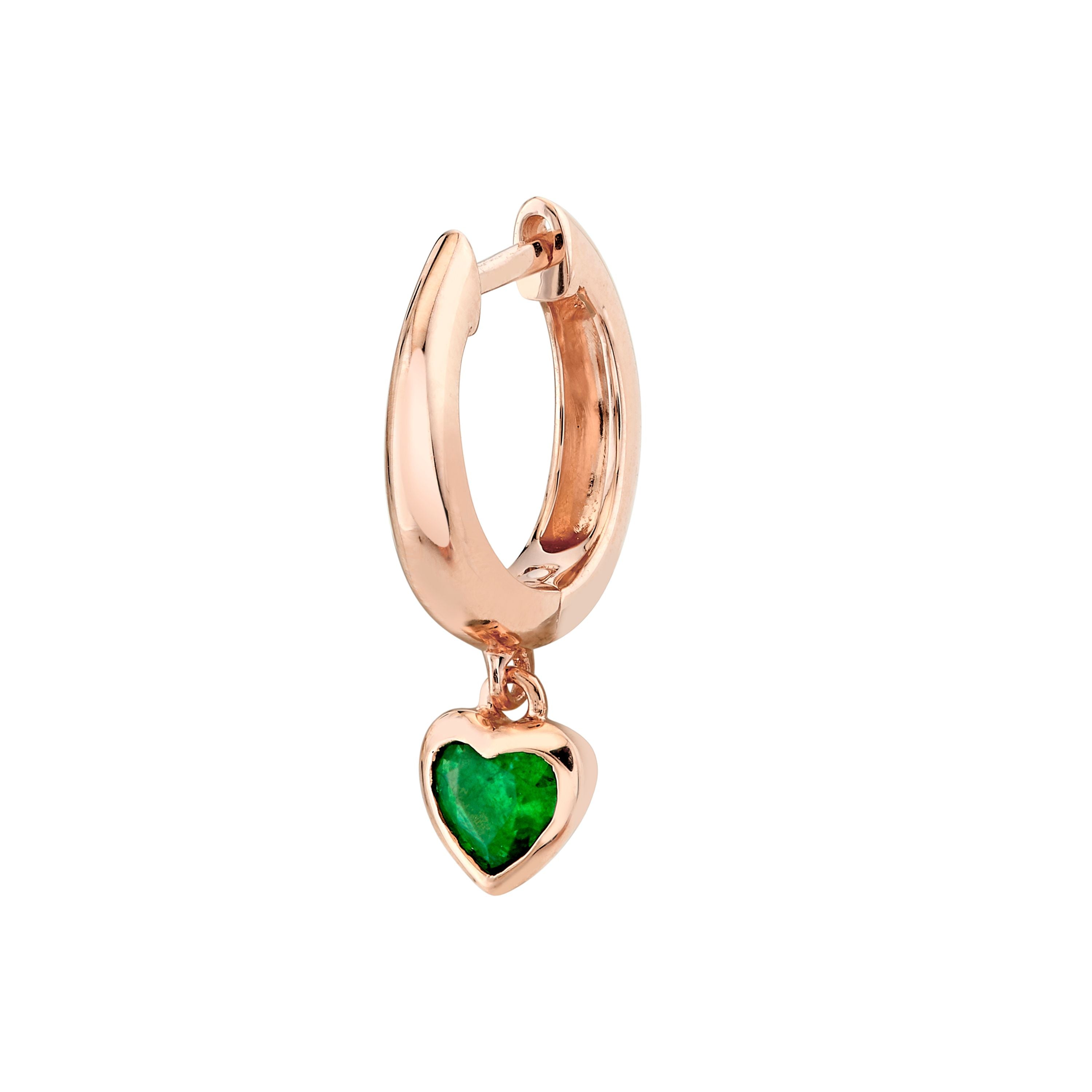 The SHAY Single Emerald Bezel Heart Drop Huggie.