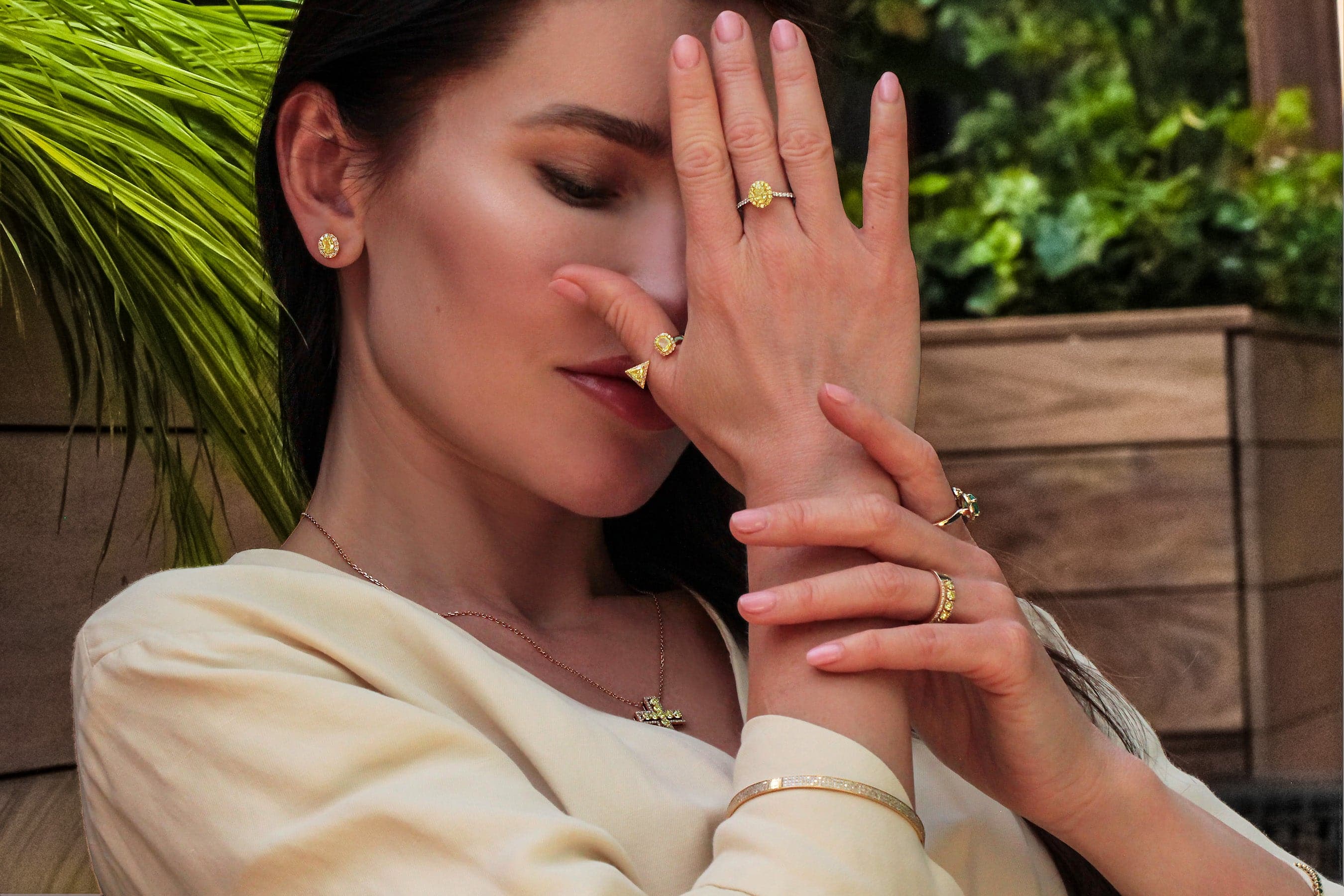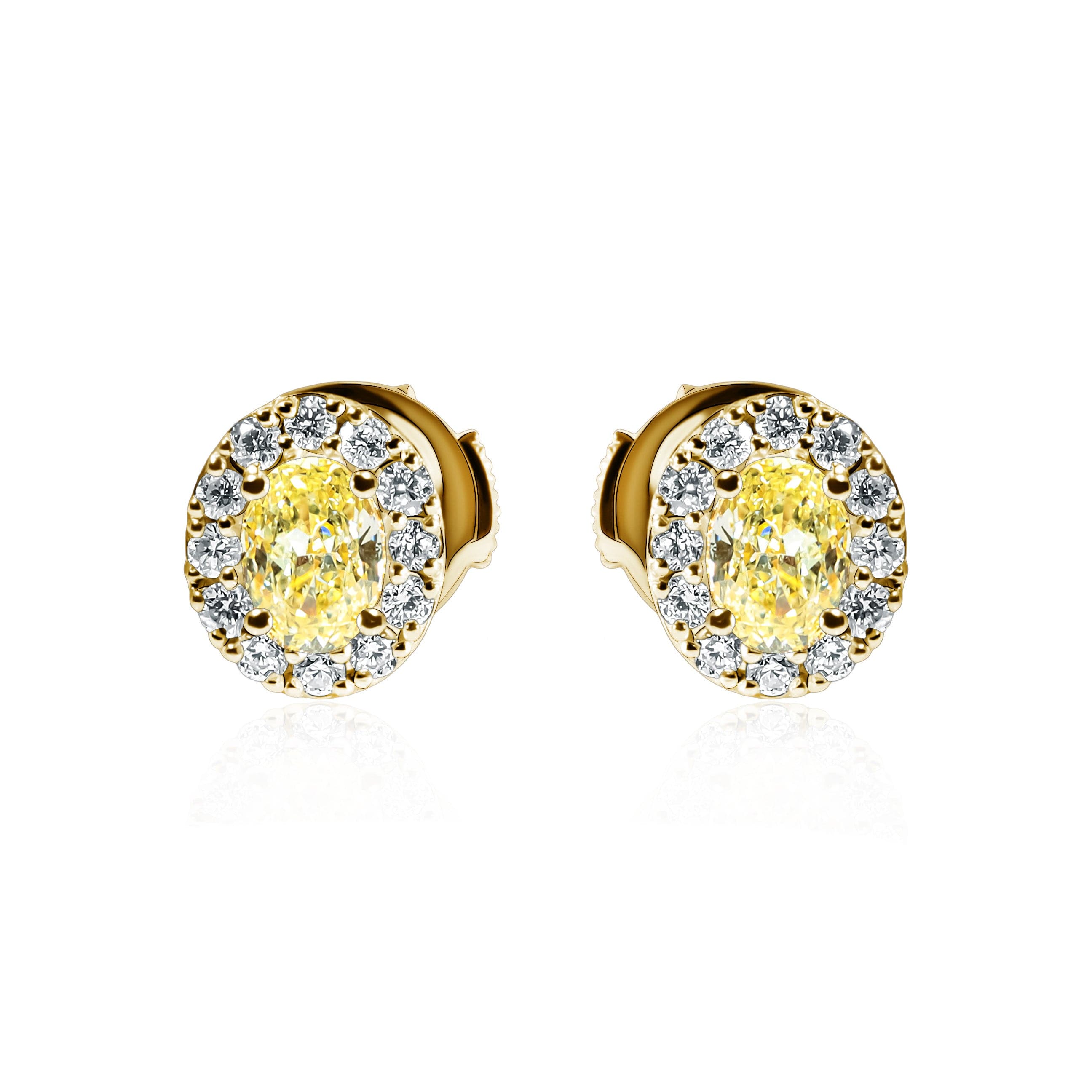 Just take a look at them! Two drops of sun on your ears. Sol earrings with fancy yellow diamonds in the center and white around them sparkle with lightness, cheerfulness, and positivity.
