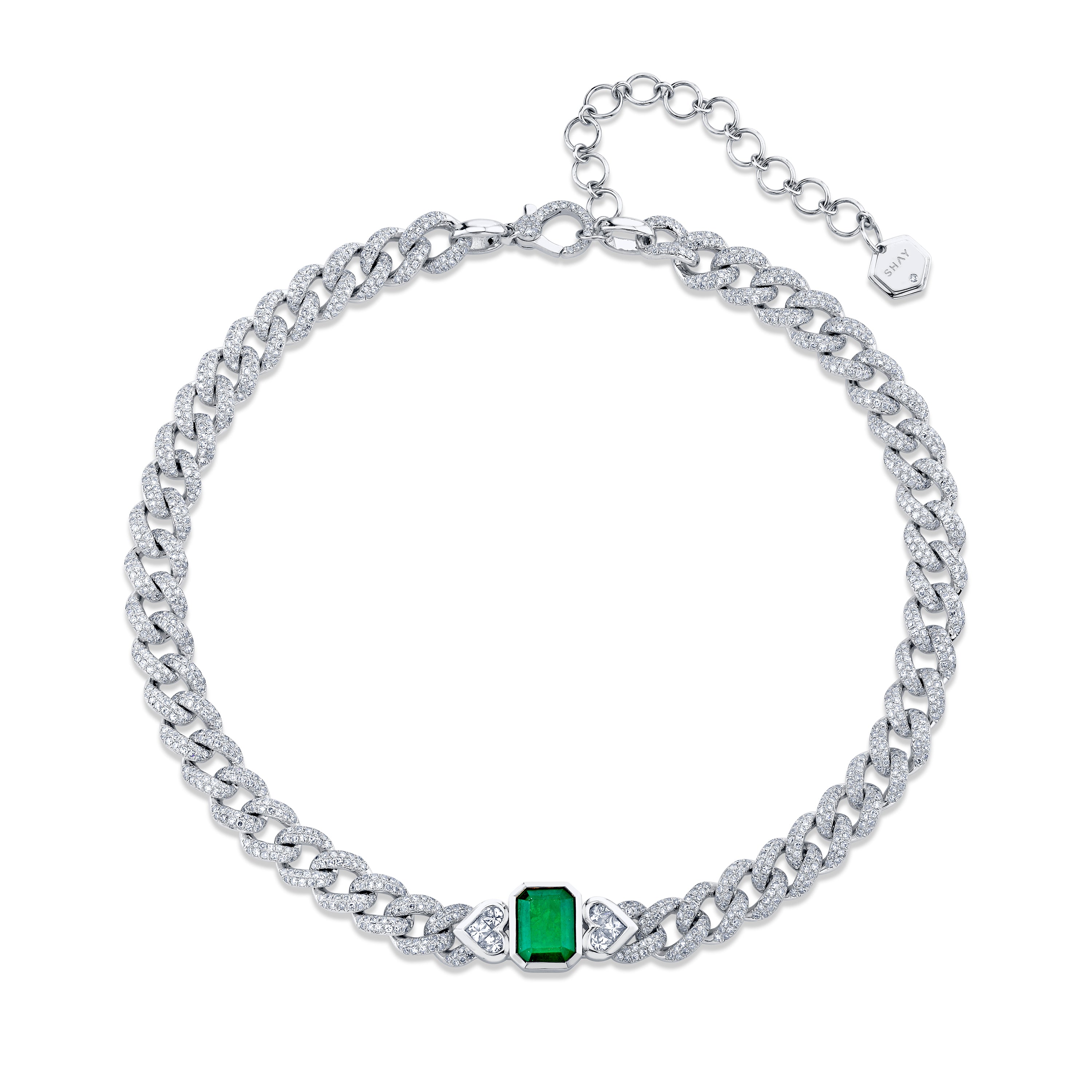 The SHAY Emerald Tri Diamond Medium Link Necklace.