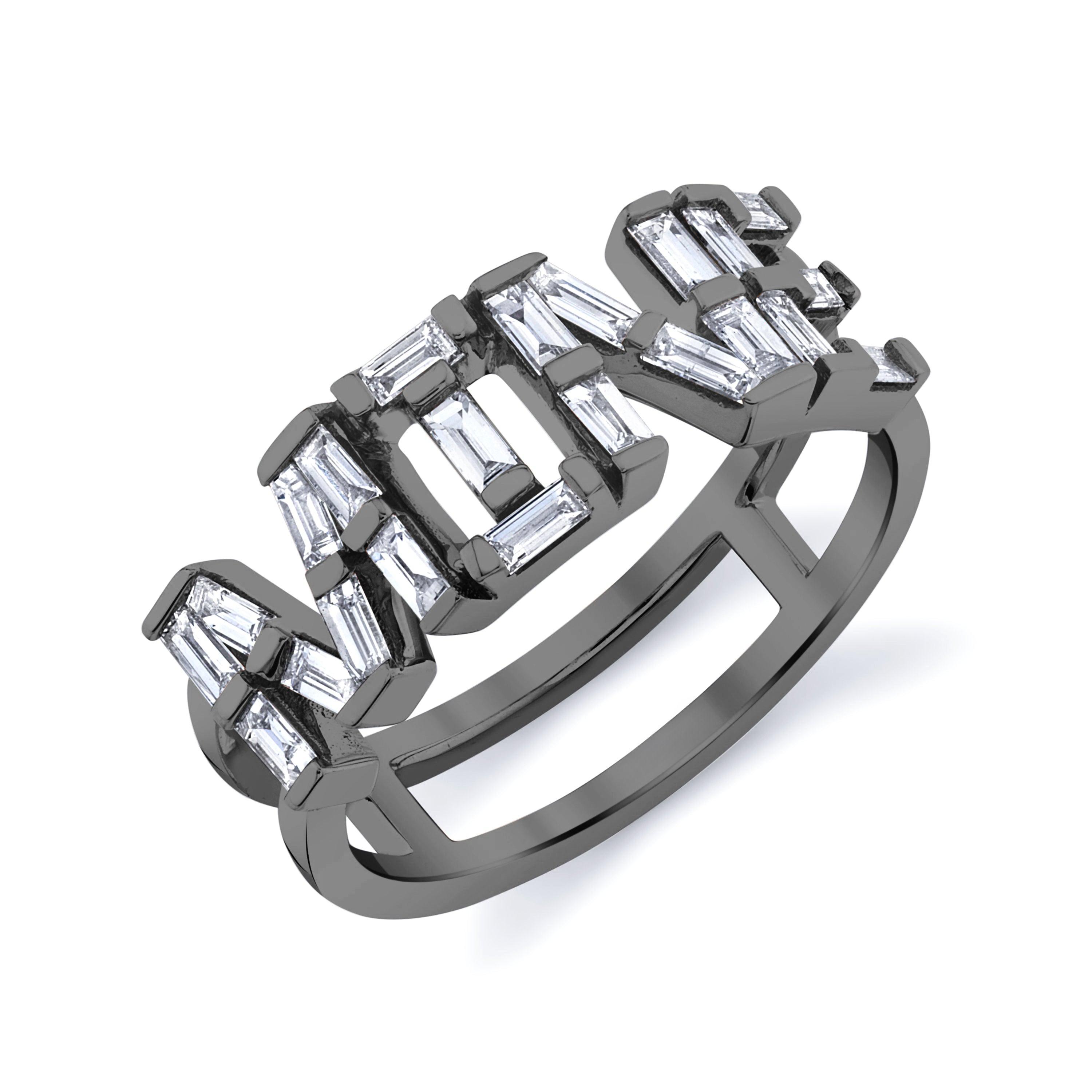 DIAMOND BAGUETTE PERSONALIZED 4 LETTER STACKED RING