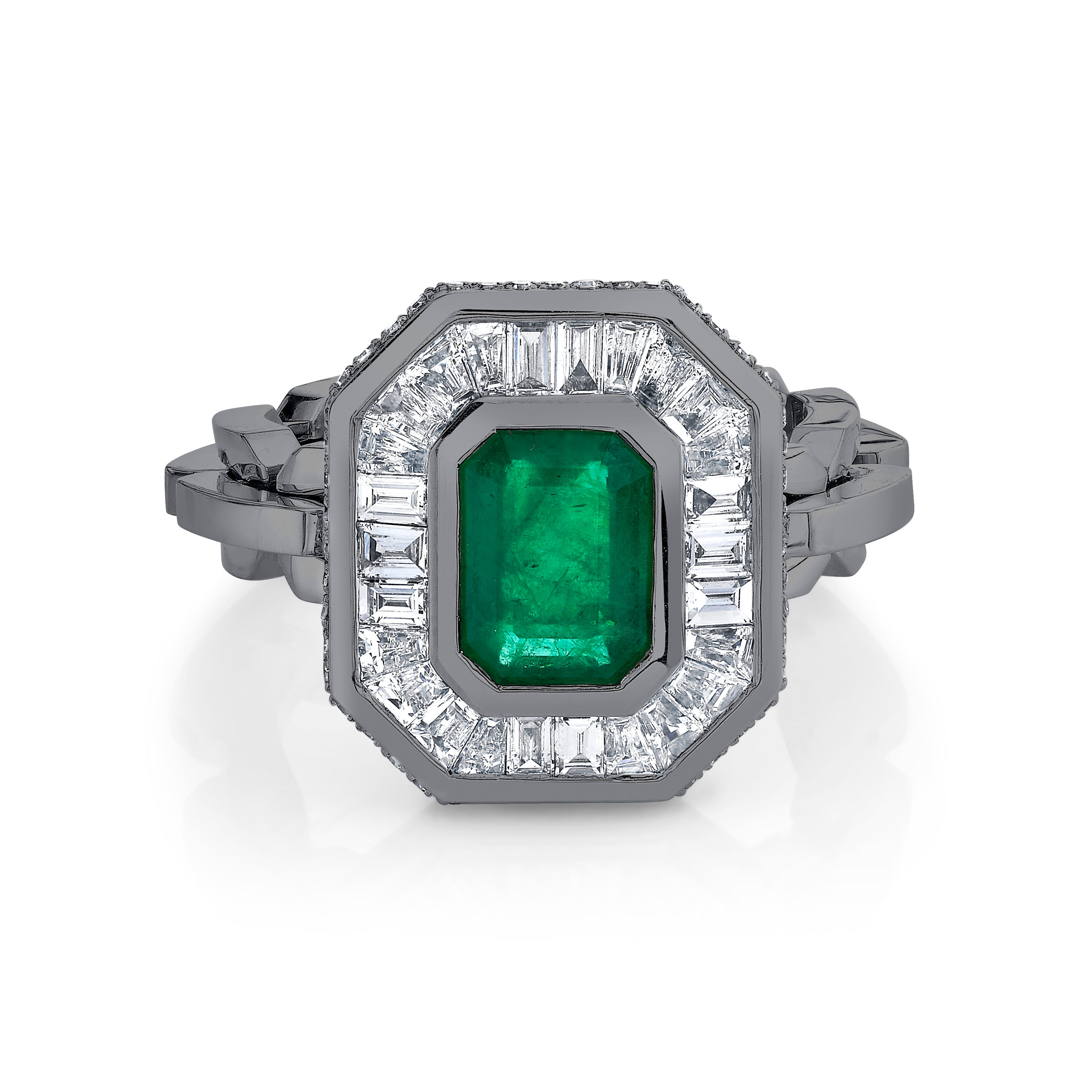 The SHAY Emerald & Diamond Halo Mini Deco Ring.