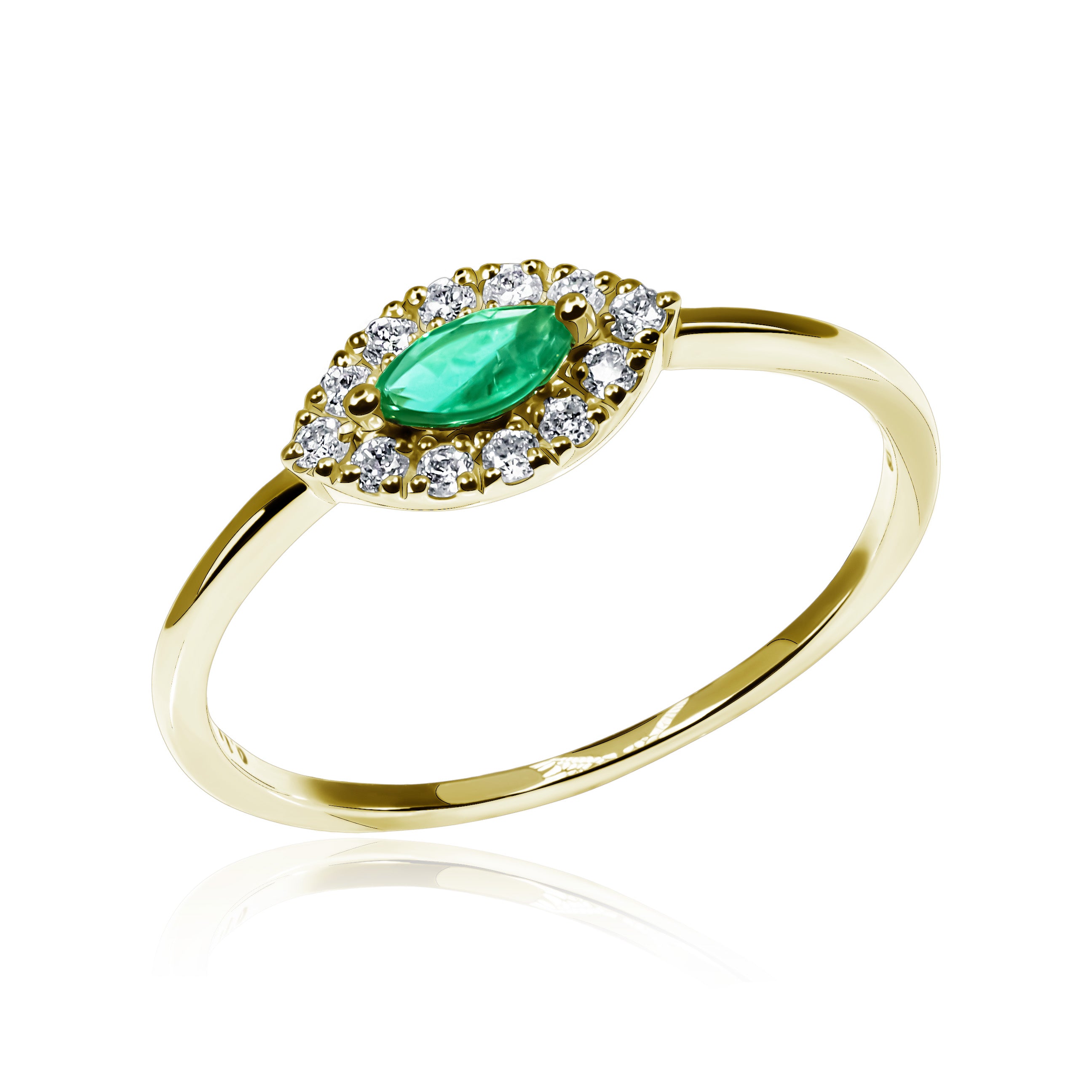 A ring with emerald and diamonds complements the Nazar jewelry series. A delicate and sophisticated product carries strength and will protect the energy field of its owner.