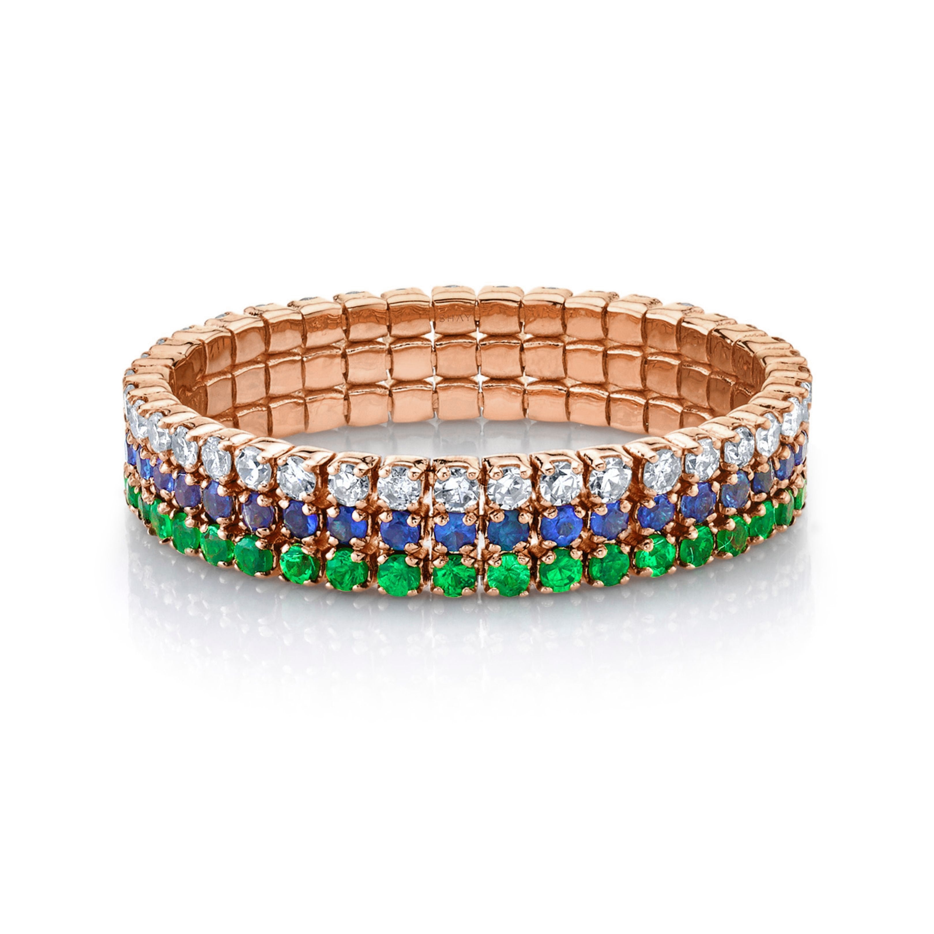 The SHAY Green Garnet & Blue Sapphire Triple Stacked Threads Ring.