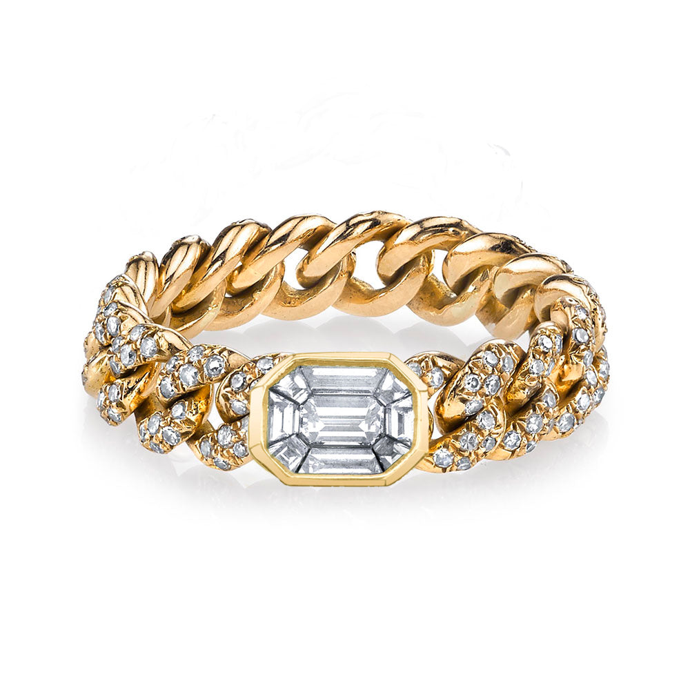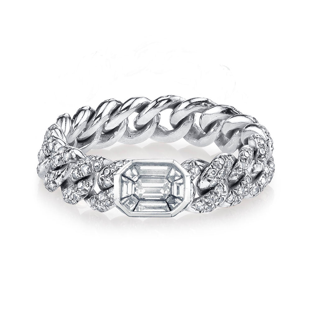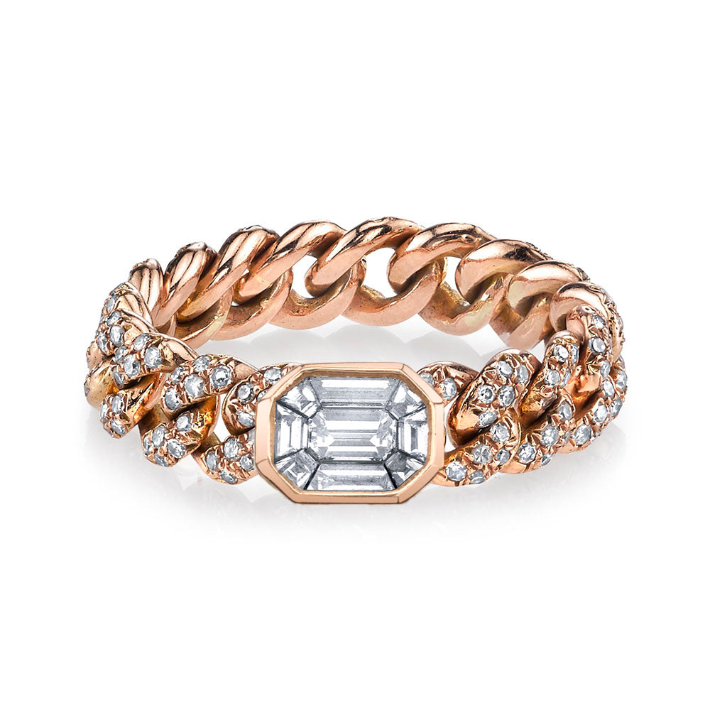 The SHAY Illusion Emerald Diamond Pave Mini Link Ring.