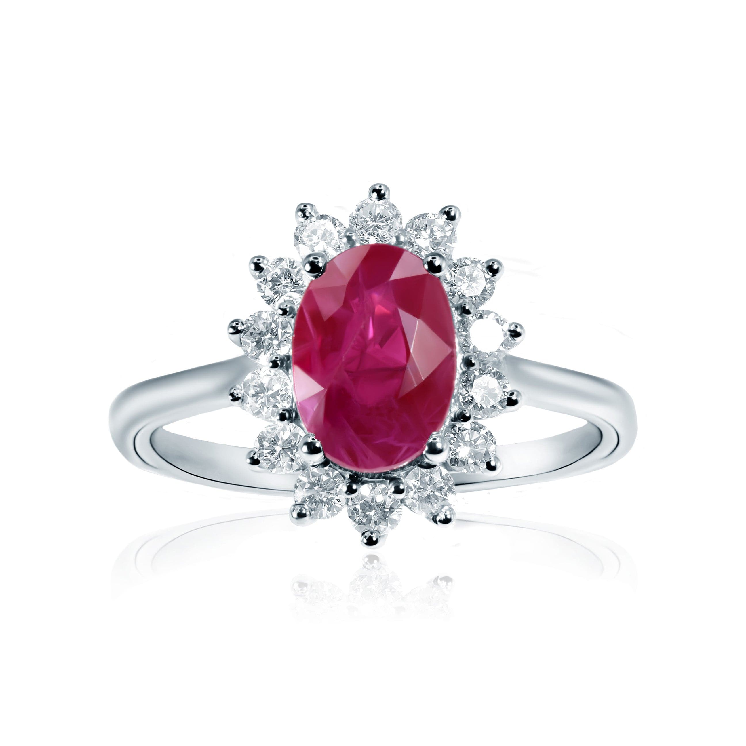 White Gold ring with Ruby and white Diamonds. This item in stock ready to ship in 1- 3 days.
