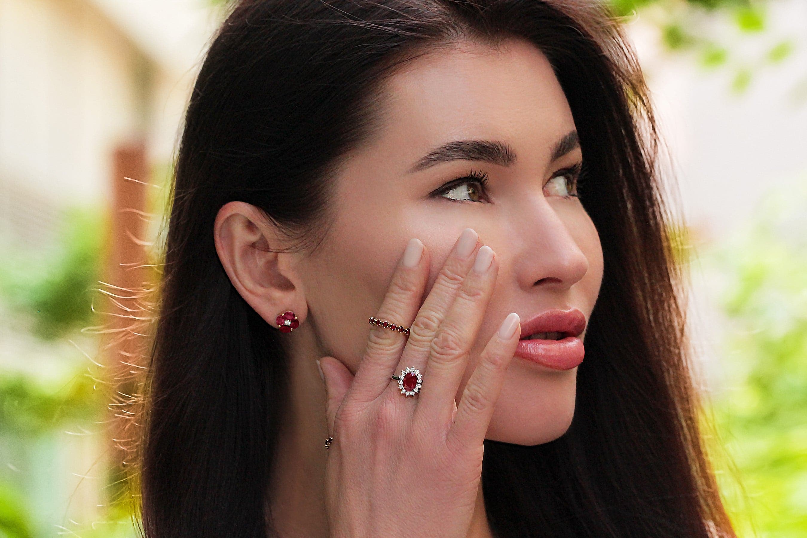 The elegant Leto ring with ruby and diamonds will be the perfect decoration for an evening look, a business meeting, or a bright accent to a strict and discreet business style.