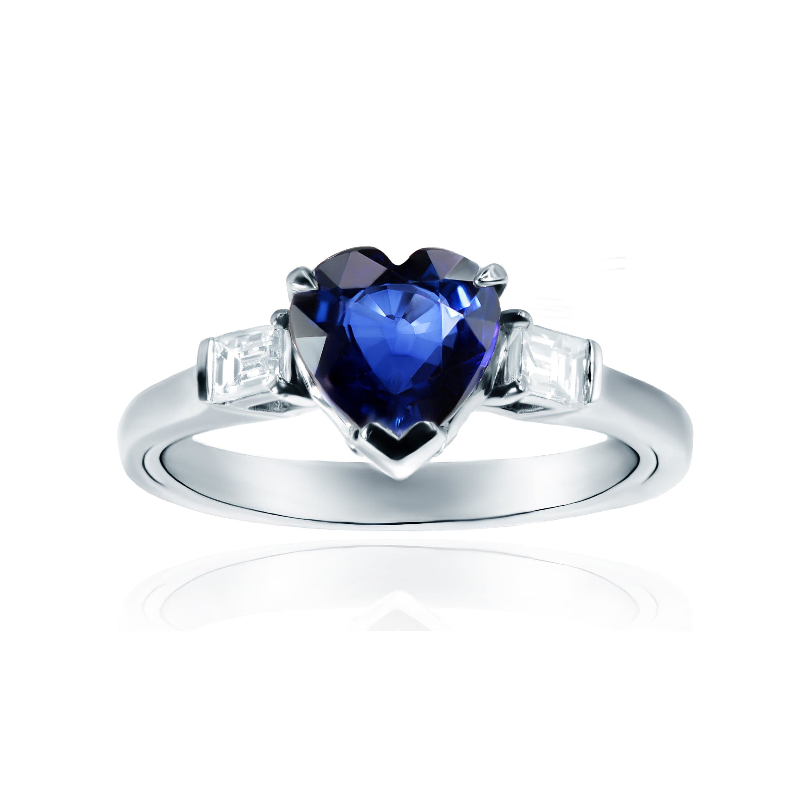 White Gold ring with Heart Blue Sapphire and white Diamonds. This item in stock ready to ship in 1- 3 days.