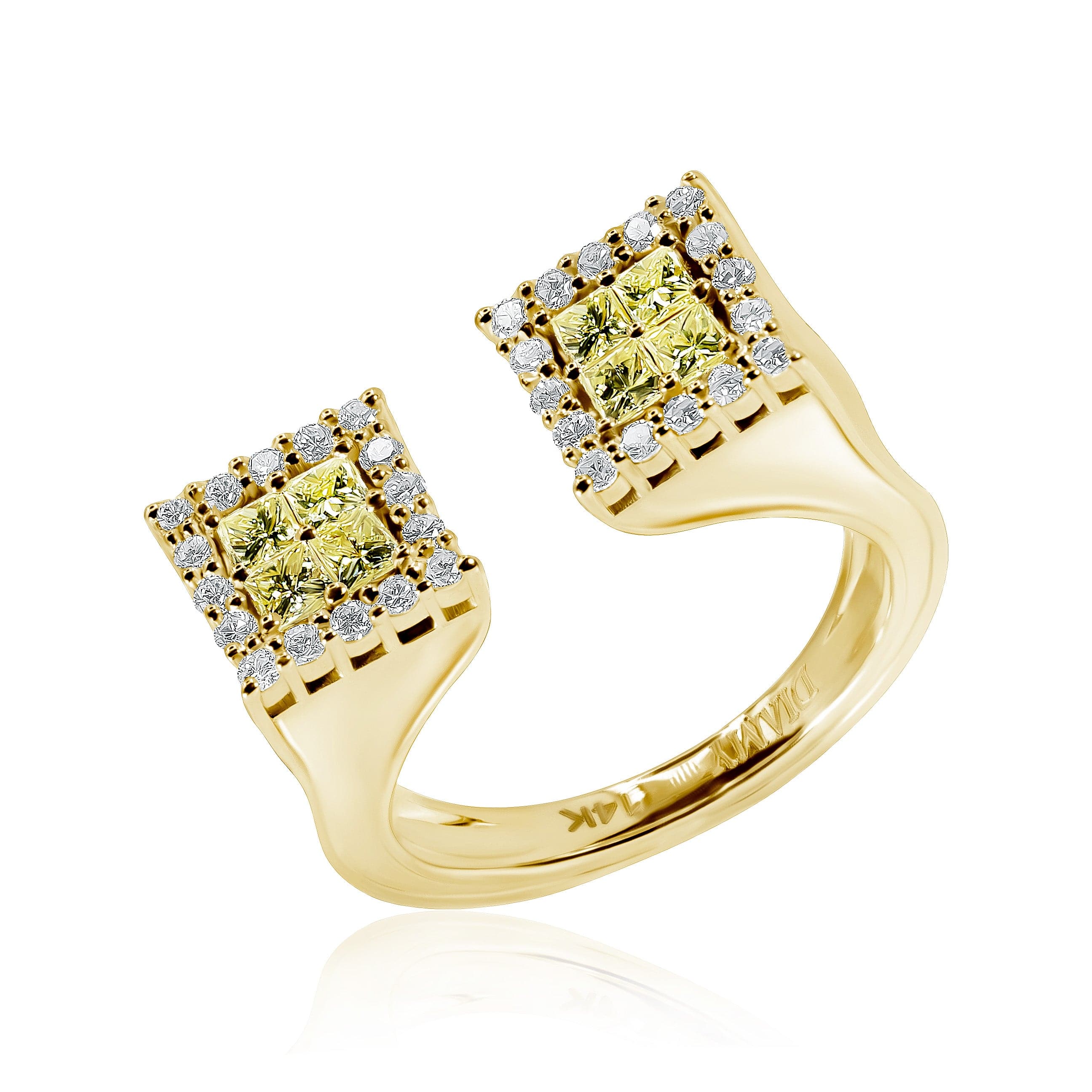 The Towers ring is a piece of jewelry with an original design, encrusted with yellow and white diamonds. If you like unusual accessories, then this product is created for you.