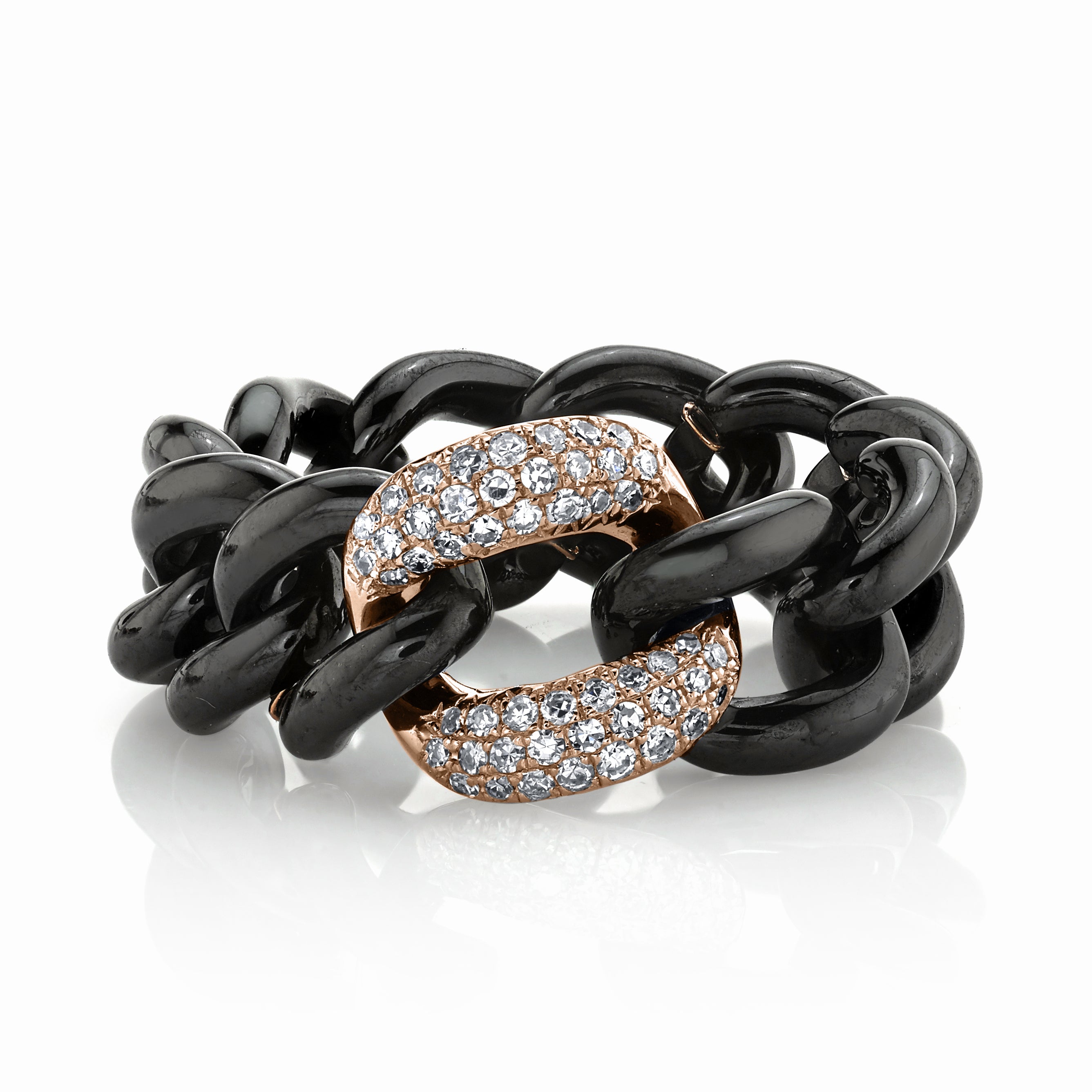 The SHAY White Diamond & Black Ceramic Medium Link Ring.