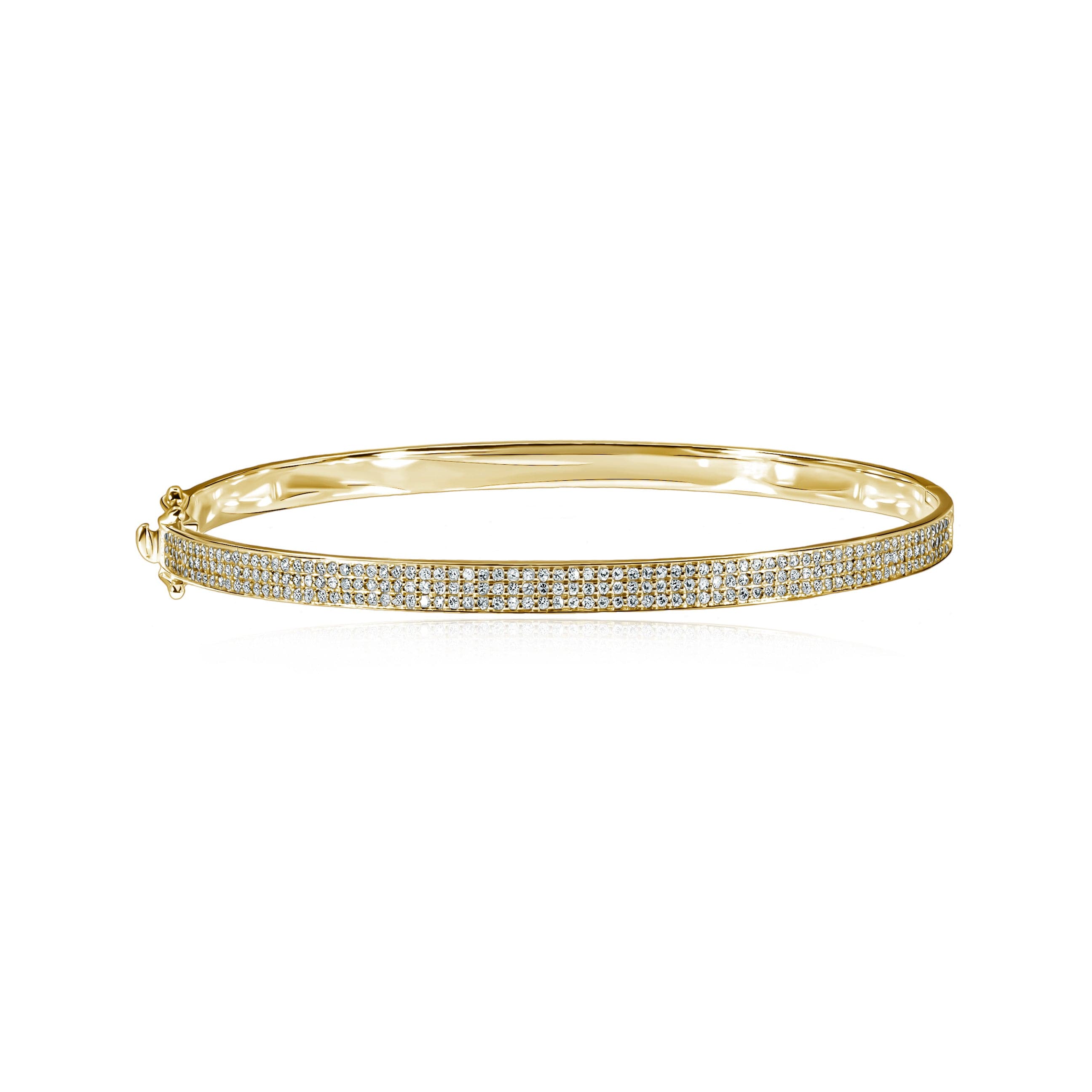 A rigid classic bracelet with diamonds complements the Farandole jewelry series. This product is encrusted with three rows of diamonds and has an ergonomic shape, which does not allow the accessory to twist during wear.