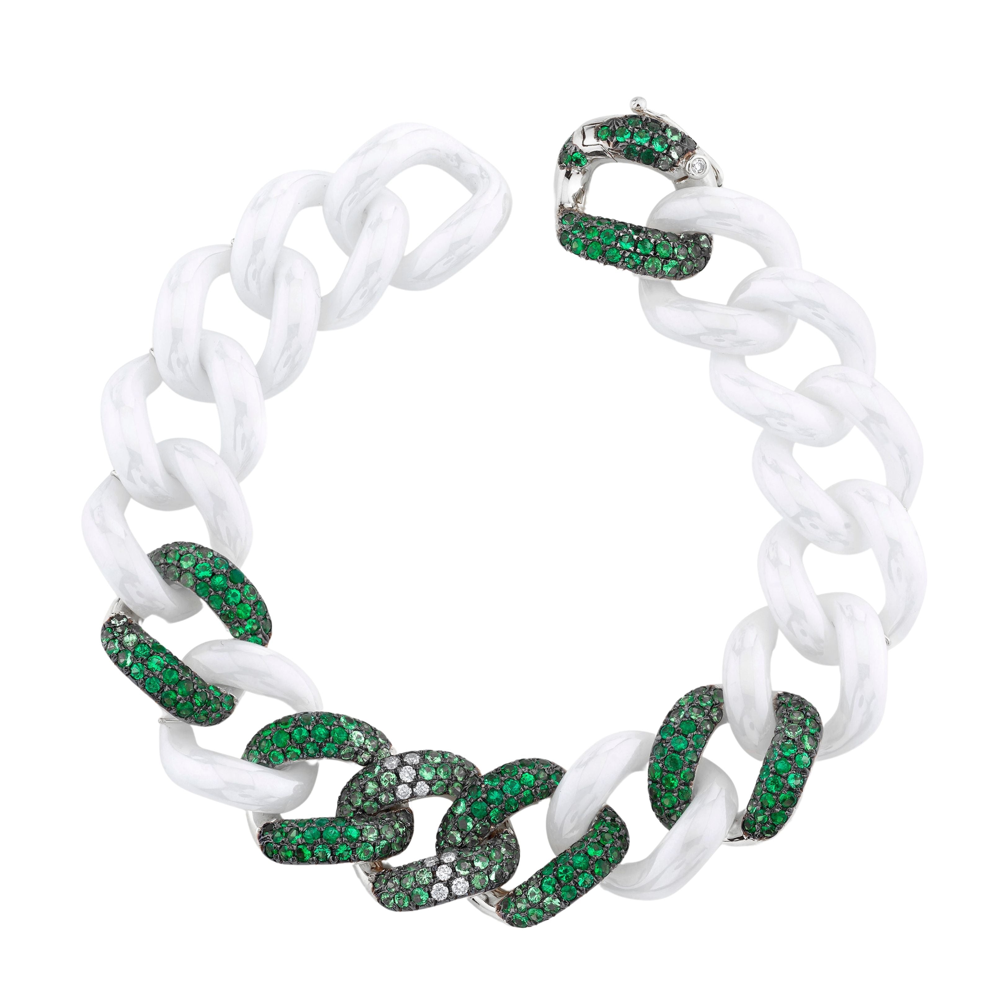 The SHAY Green Ombre 6 Pave White Ceramic Jumbo Link Bracelet.