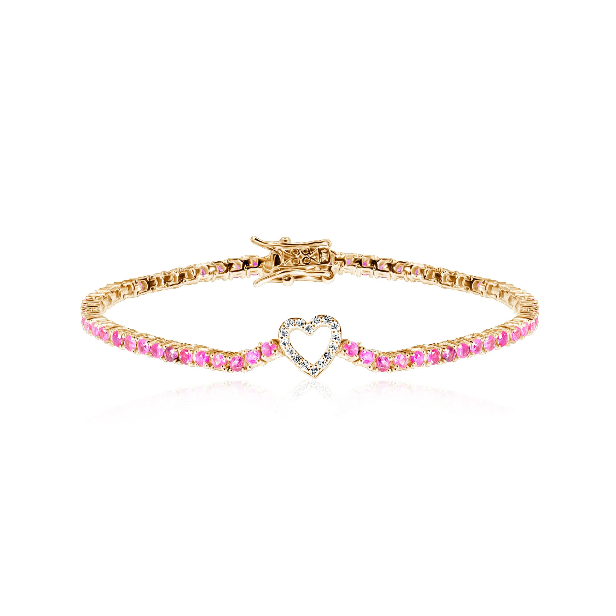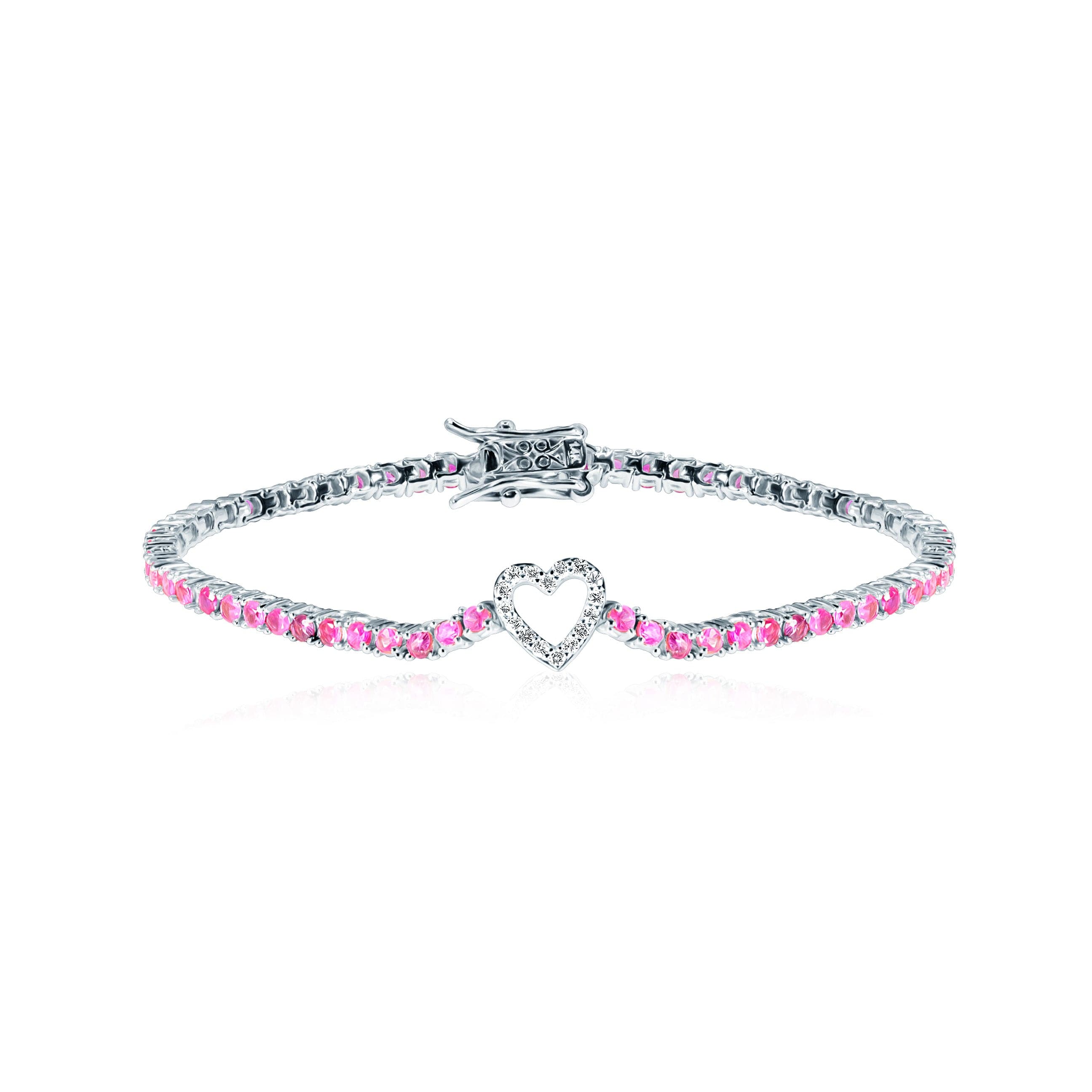 A bracelet with pink sapphires and a heart-shaped insert encrusted with diamonds epitomizes tenderness and sensuality. The Berenice bracelet will be an excellent gift for your soulmate and your loved one friend.