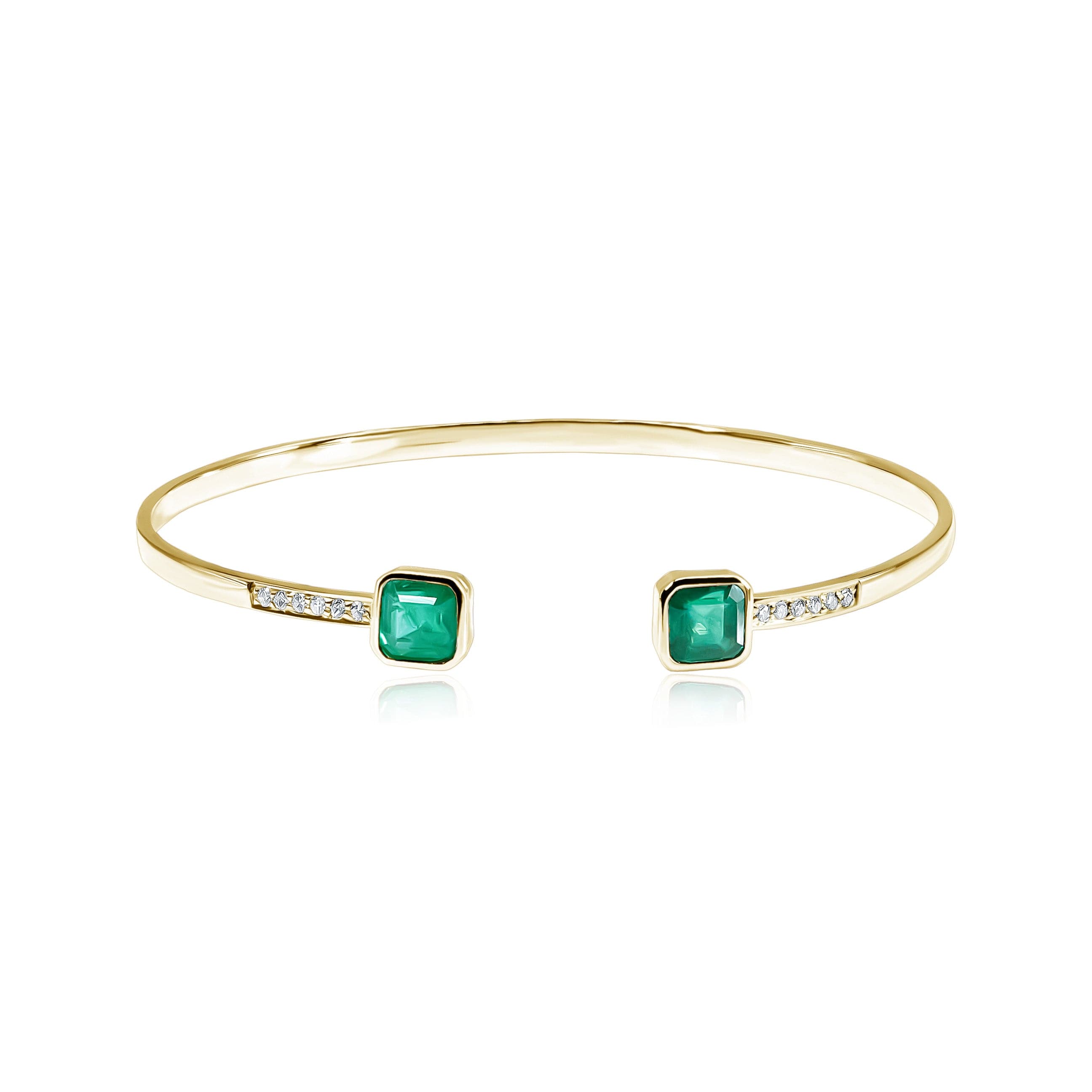Yellow Gold bracelet with Emerald and White Diamonds. This item in stock ready to ship in 1- 3 days.