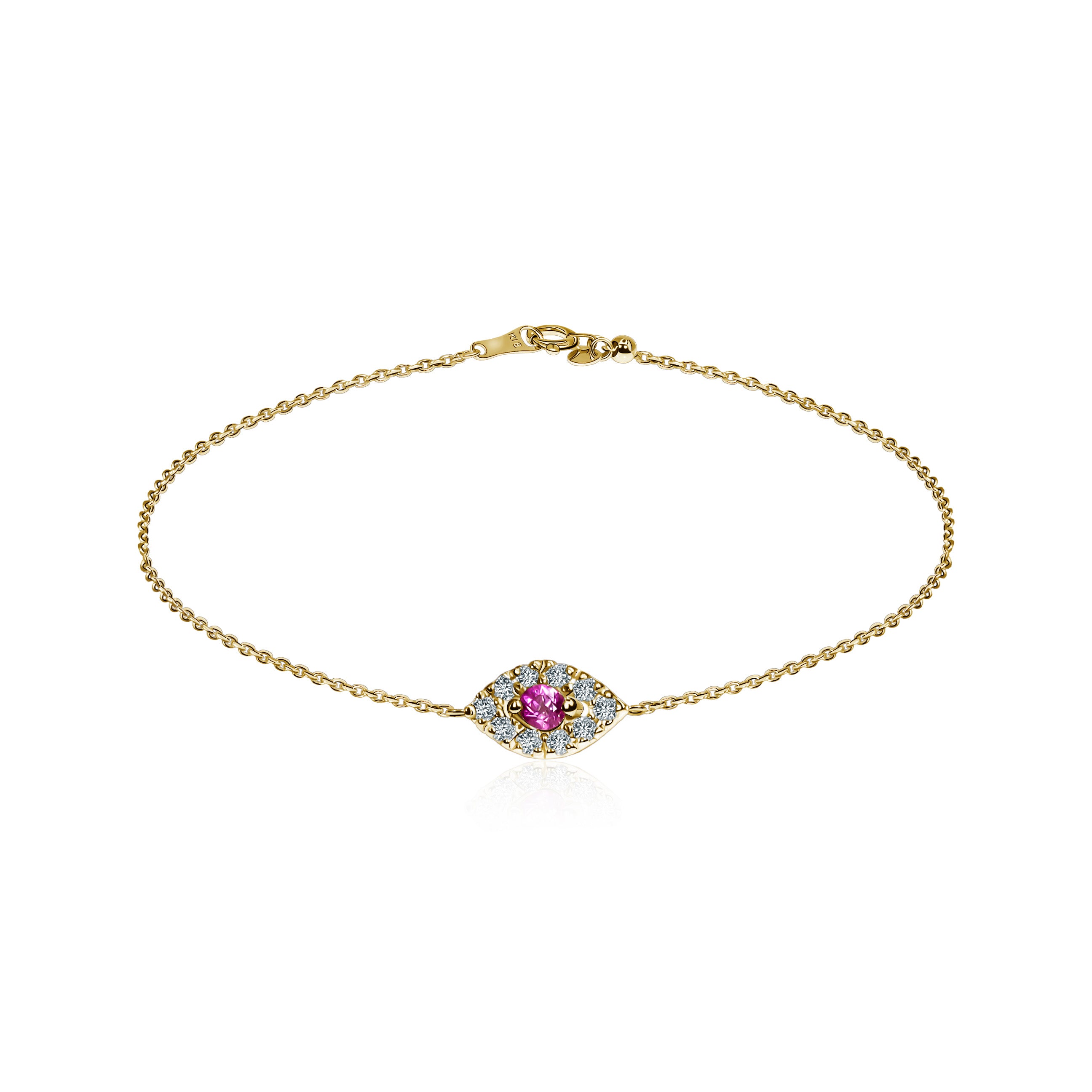 A bracelet with an element in the form of an eye is not only an exquisite decoration but also a mystical amulet that carries ancient symbols of protection and magic. Feel the positive energy with the Parki Ruby and Diamond Bracelet.