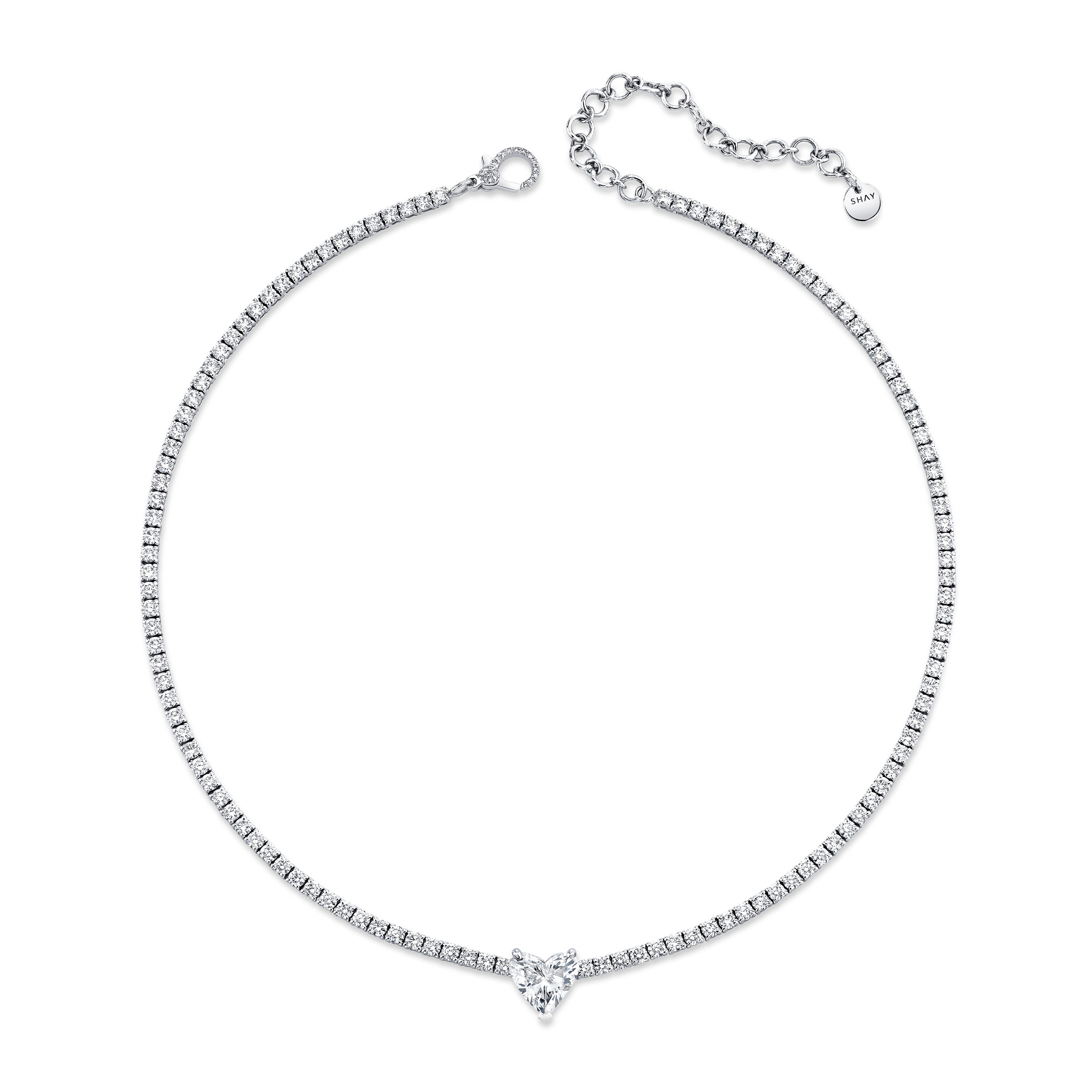 The SHAY Diamond Heart Baguette Tennis Necklace.