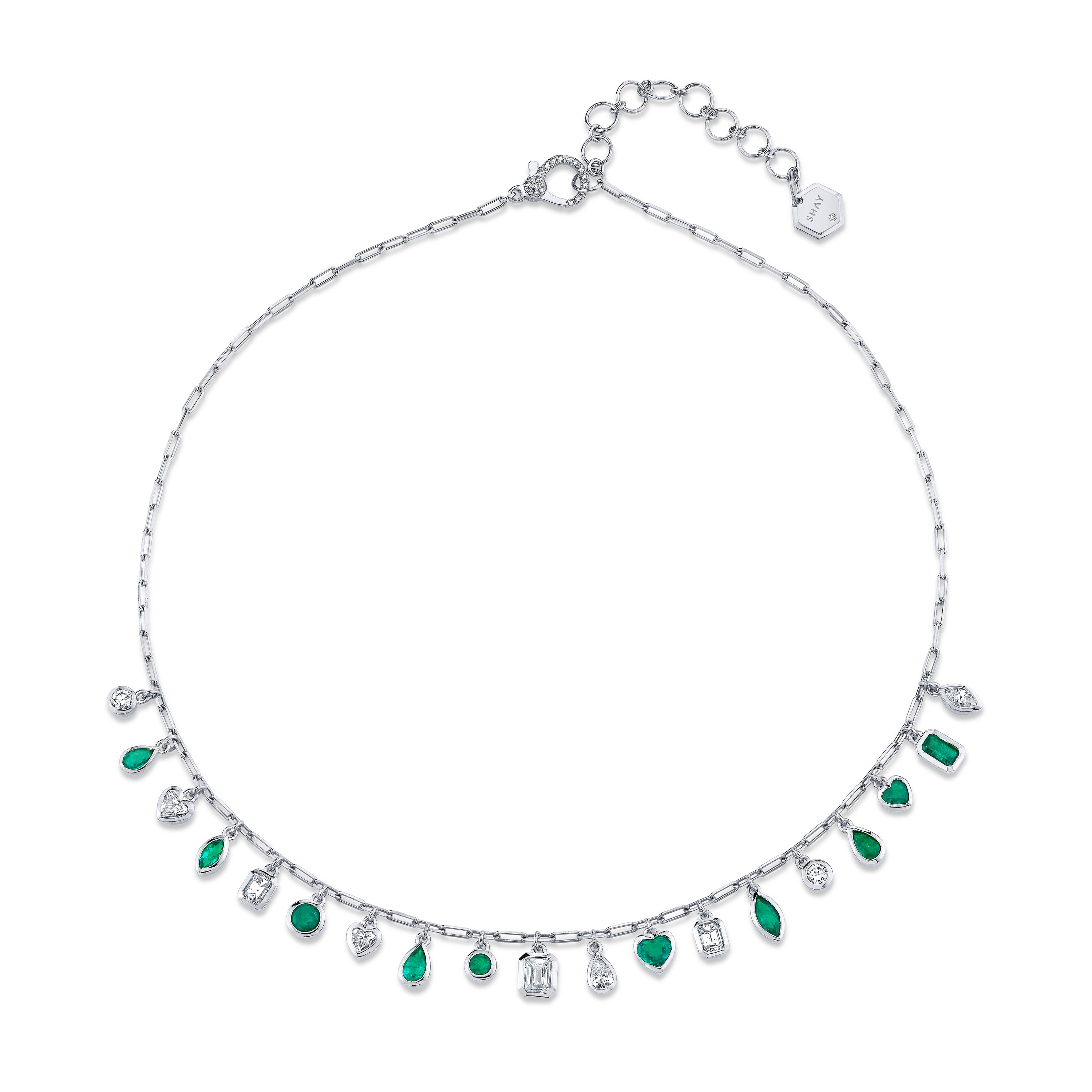 The SHAY Emerald & Diamond Mixed Drop Necklace.