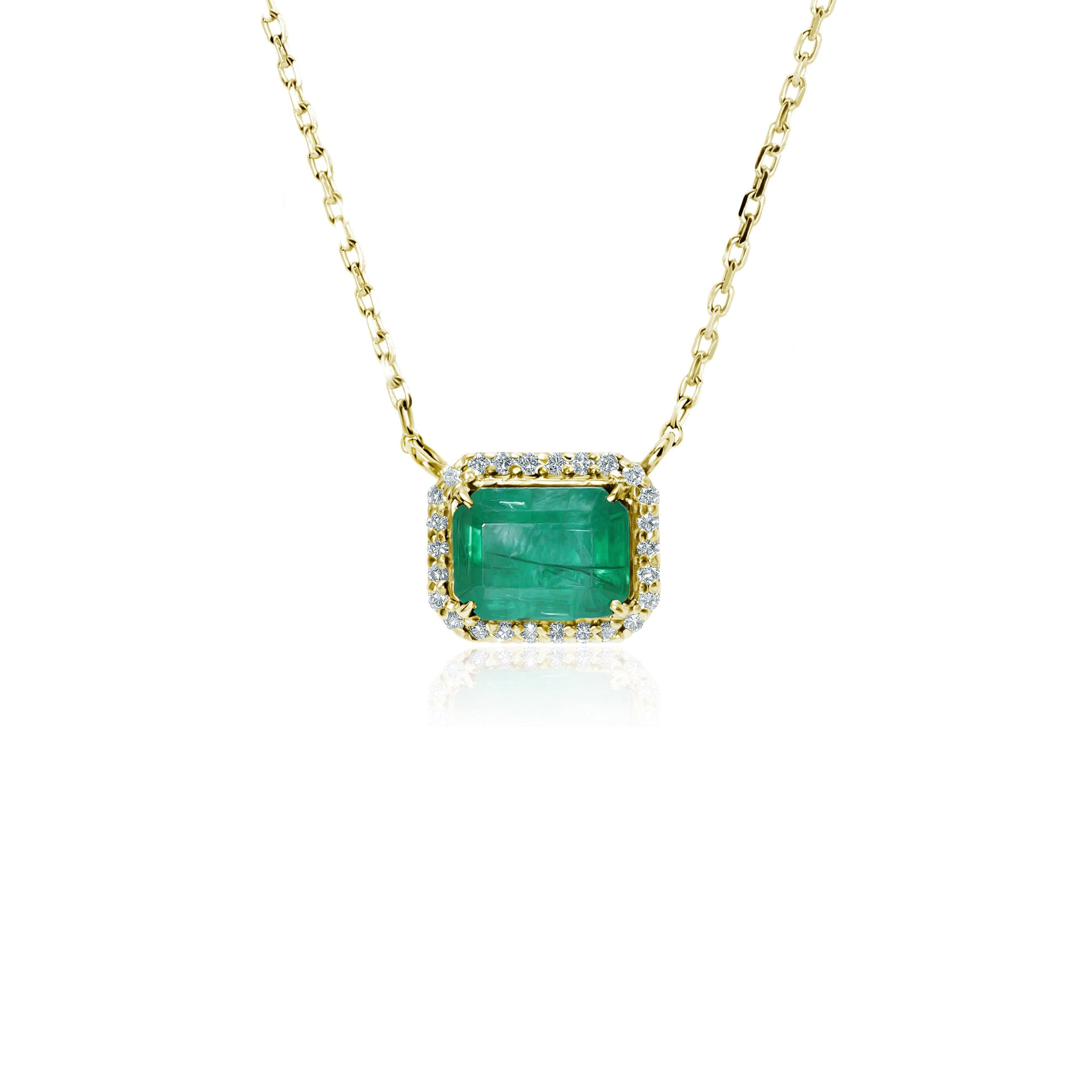 White Gold Necklaces with Emerald and white Diamonds. This item in stock ready to ship in 1- 3 days.