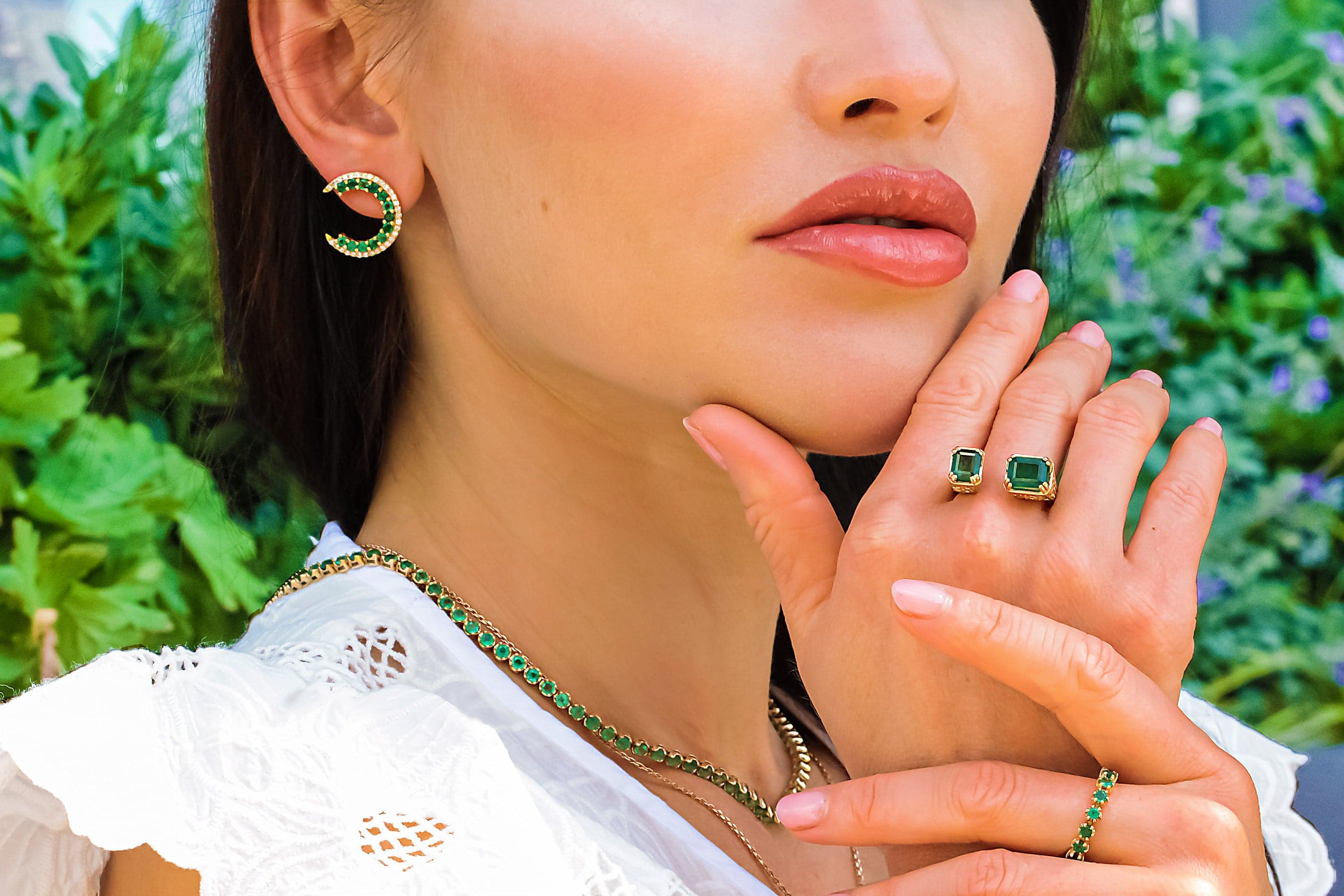 Gorgeous necklace from the Hydra jewelry collection with emeralds. In this collection, there’s a necklace, bracelet, ring, and earrings.