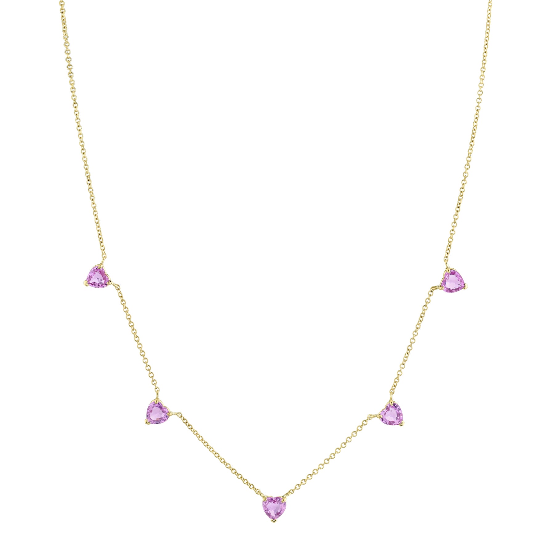 The SHAY Pink Sapphire 5 Heart Necklace.