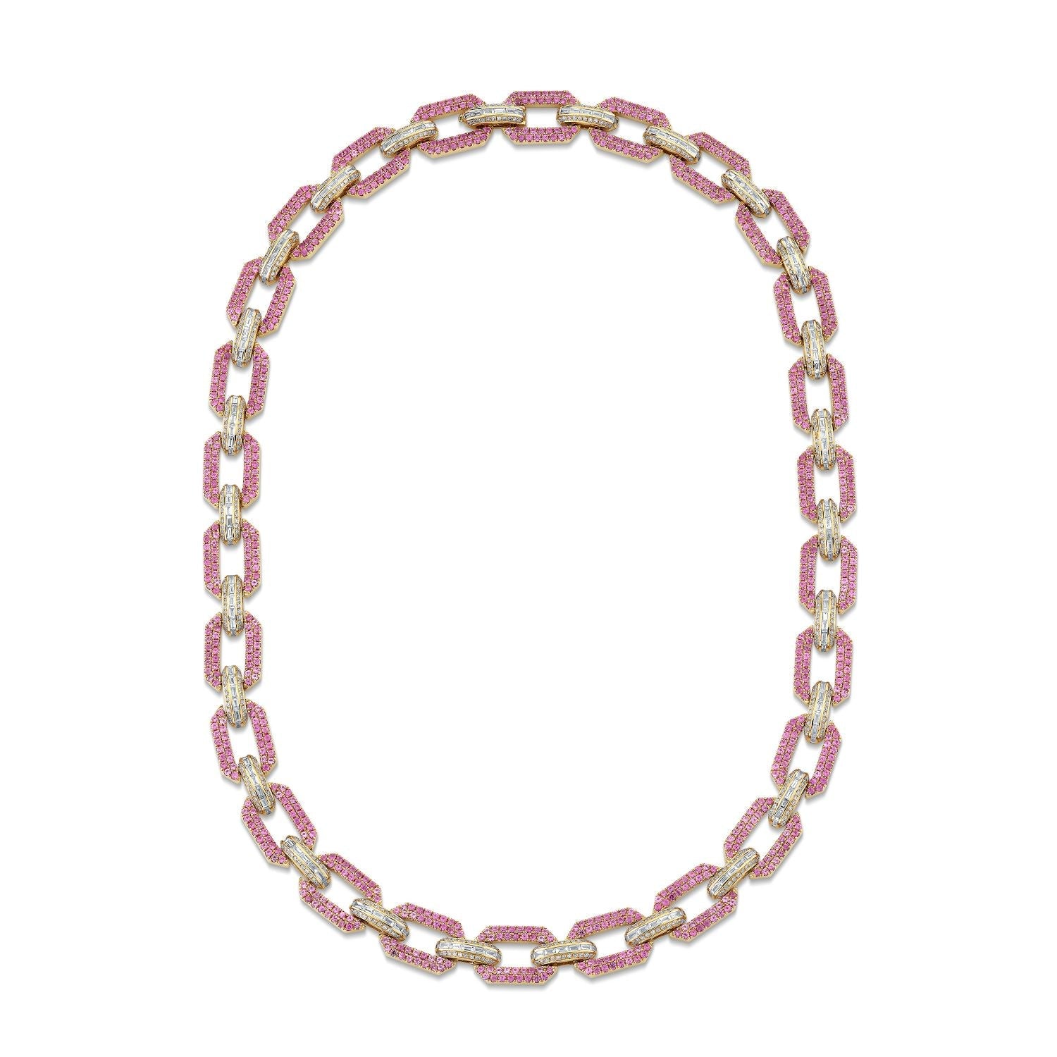The SHAY Pink Sapphire & Diamond PaveFlat Geo Link Necklace.