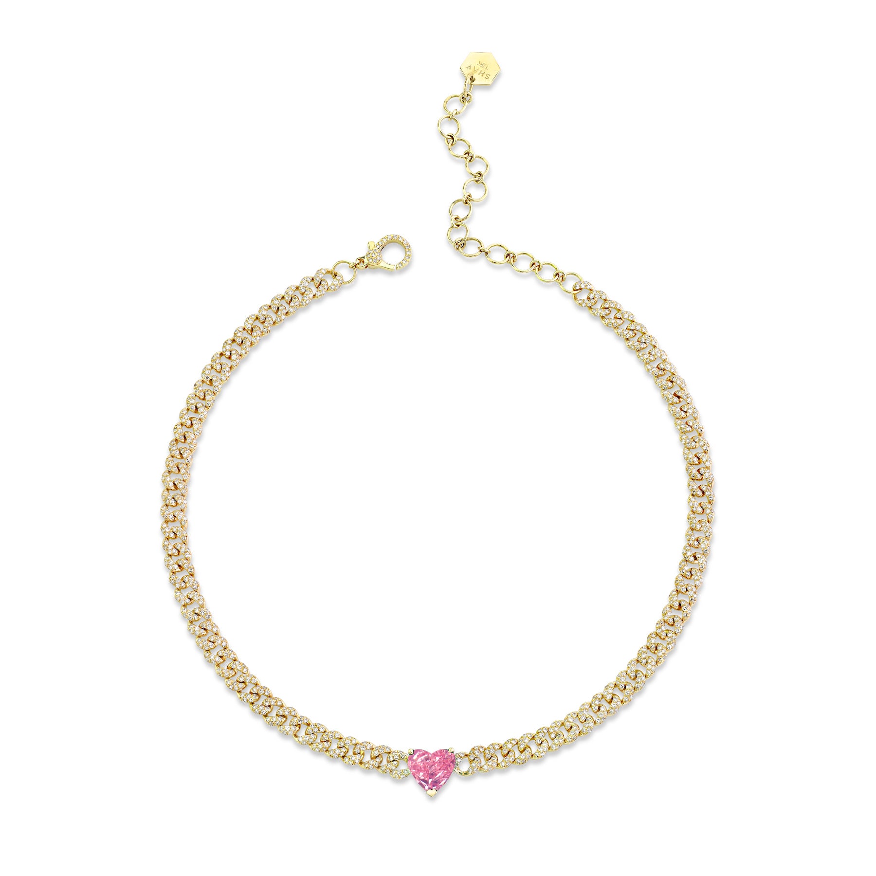 The SHAY Pink Sapphire Heart Pave Mini Link Necklace.