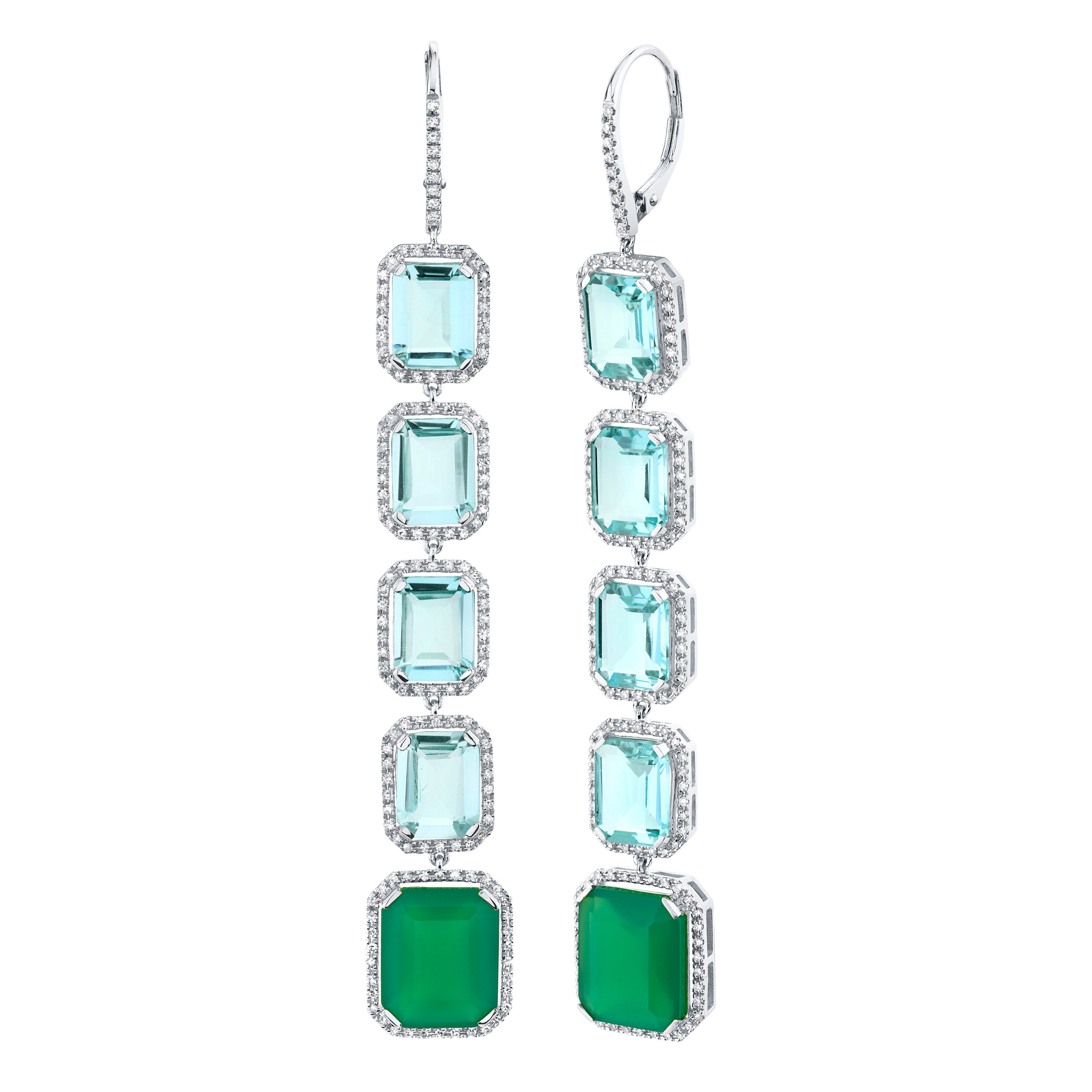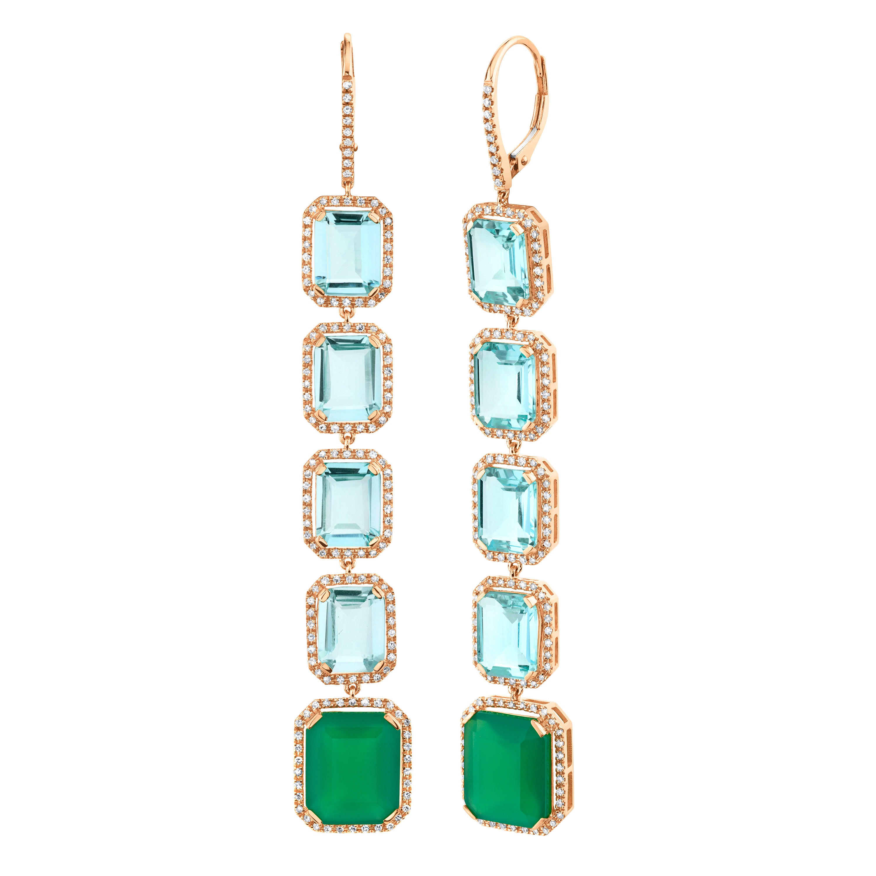 The SHAY Blue Topaz & Green Agate 5 Tier Portrait Earrings.