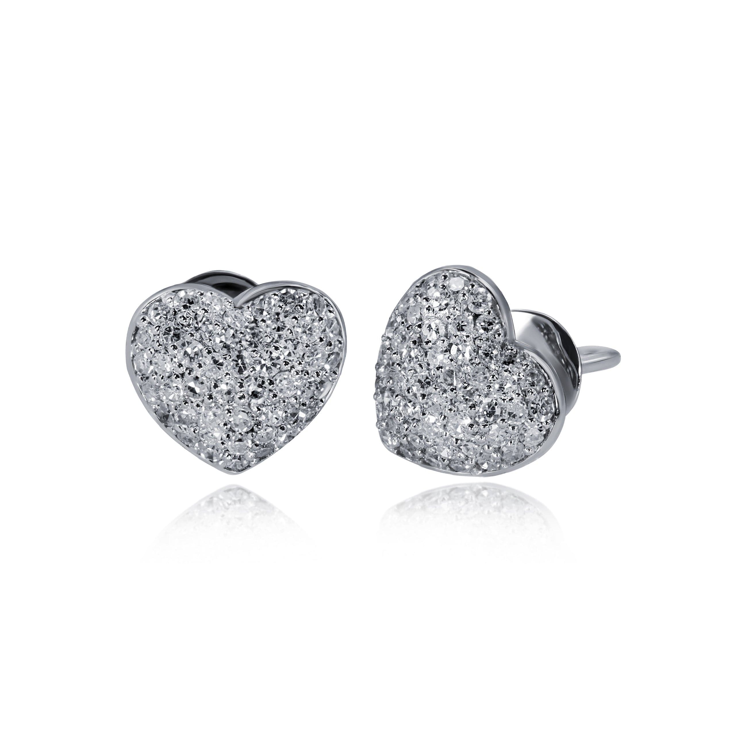 White Gold Heart earrings with White Diamonds/Diamond Studs. This item in stock ready to ship in 1- 3 days.