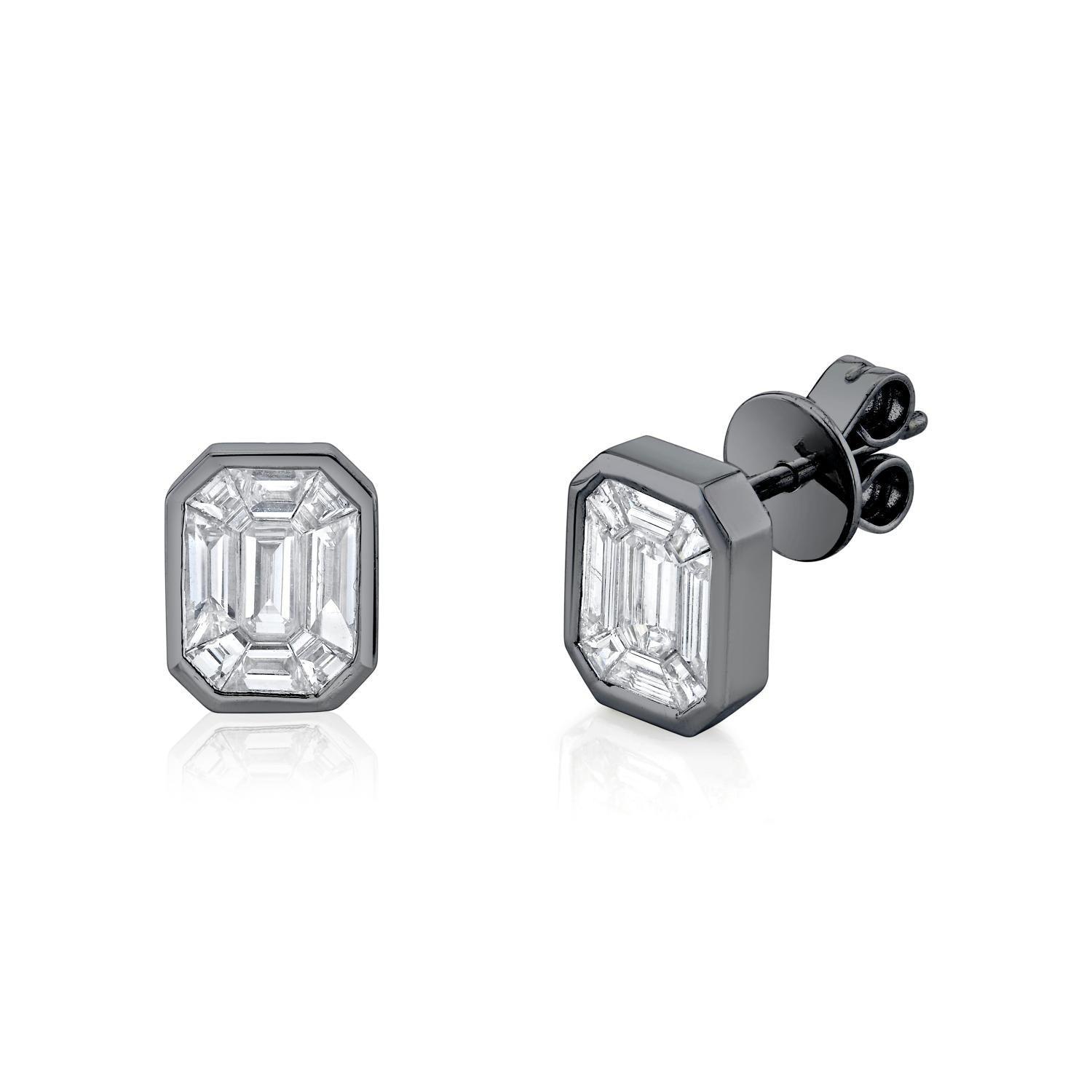 The SHAY Diamond Emerald Cut Illusion Studs.