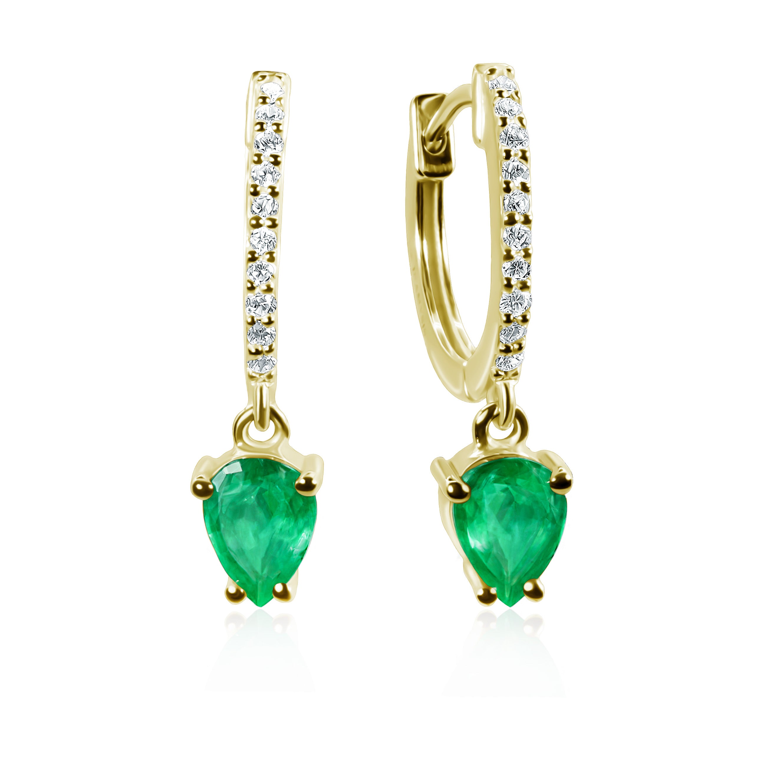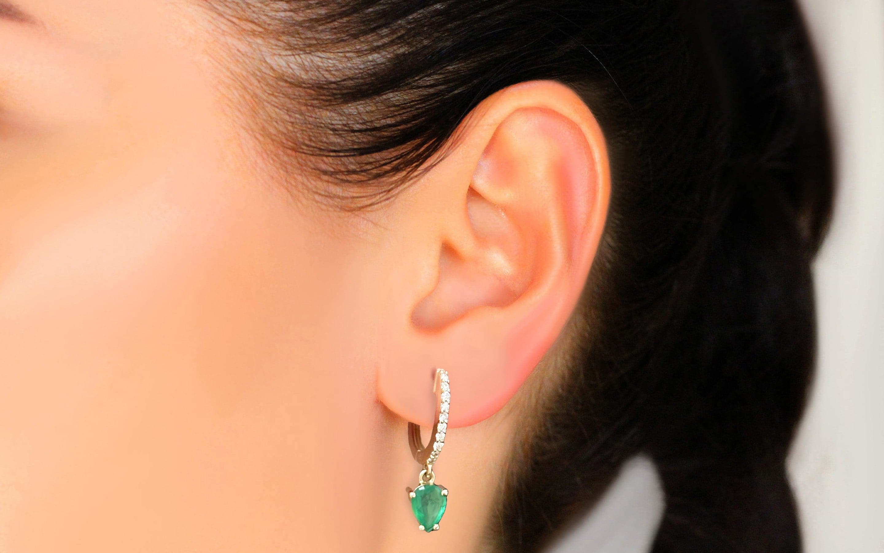Juno emerald and diamond moving part earrings are a piece of jewelry you can wear daily due to their neat shape and medium size. At the same time, this accessory will look appropriate under an evening dress.
