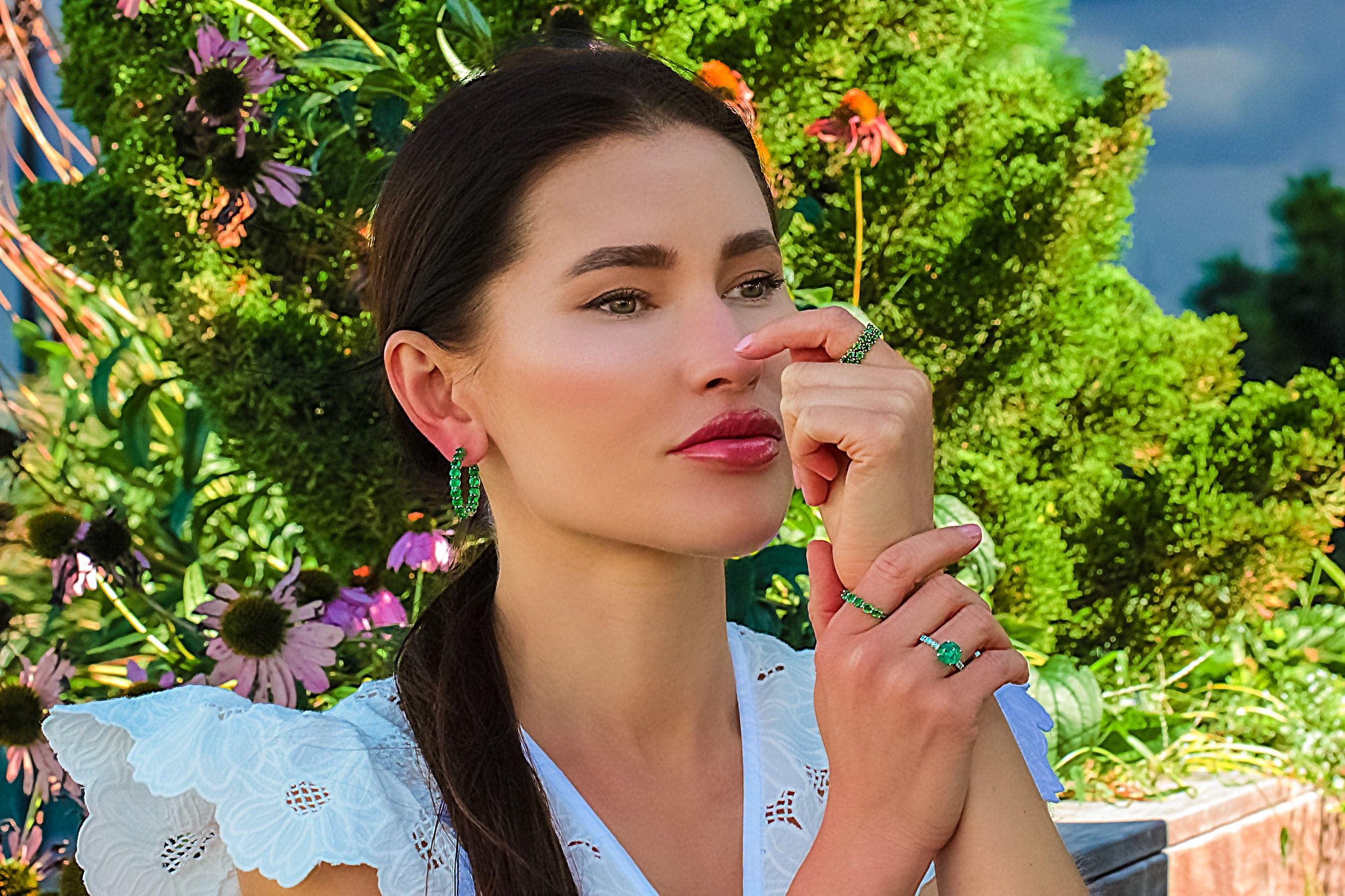 Hoop earrings with Hydra emeralds for those who love large jewelry. This accessory will not leave you without attention.