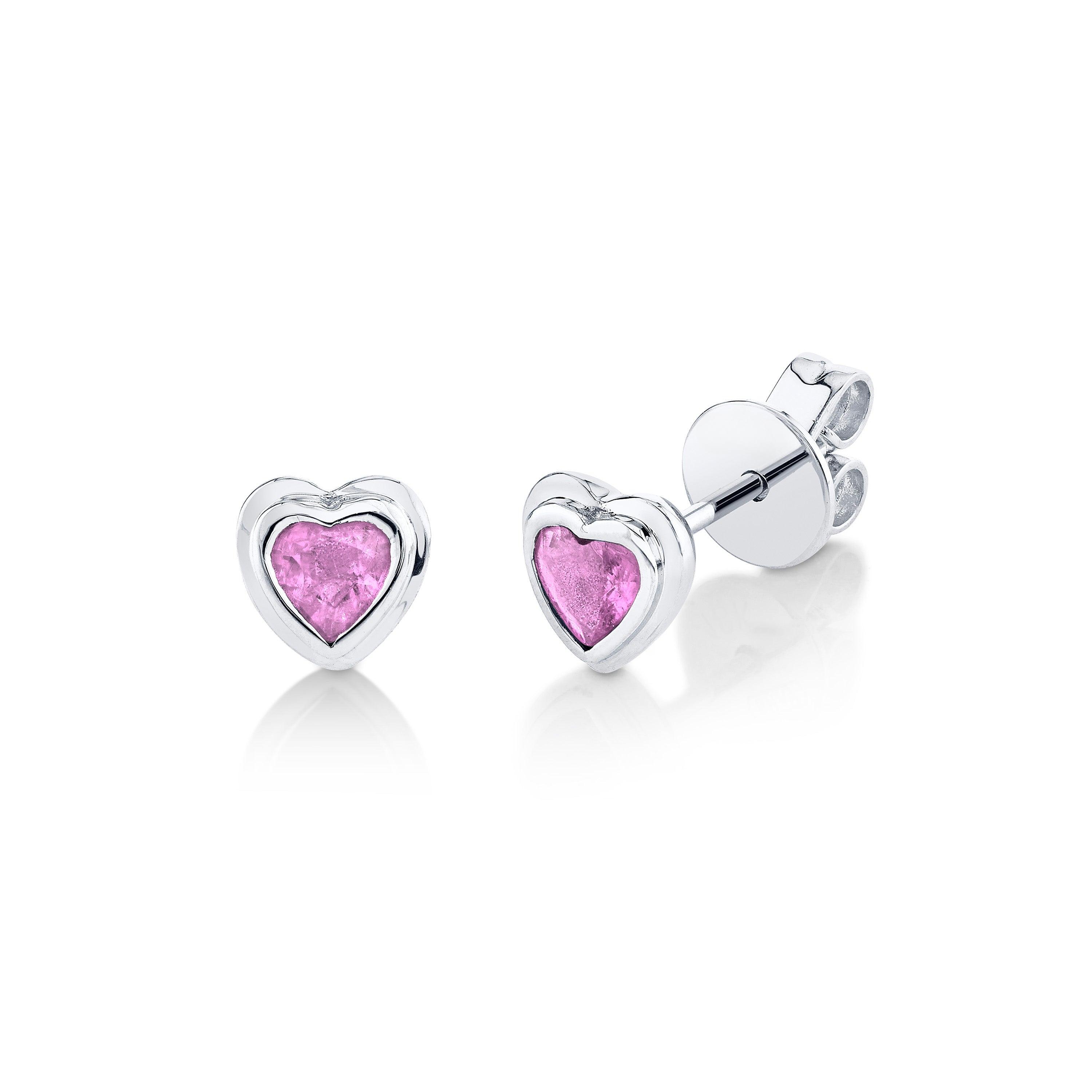 MINI ME PINK SAPPHIRE BEZEL HEART STUDS